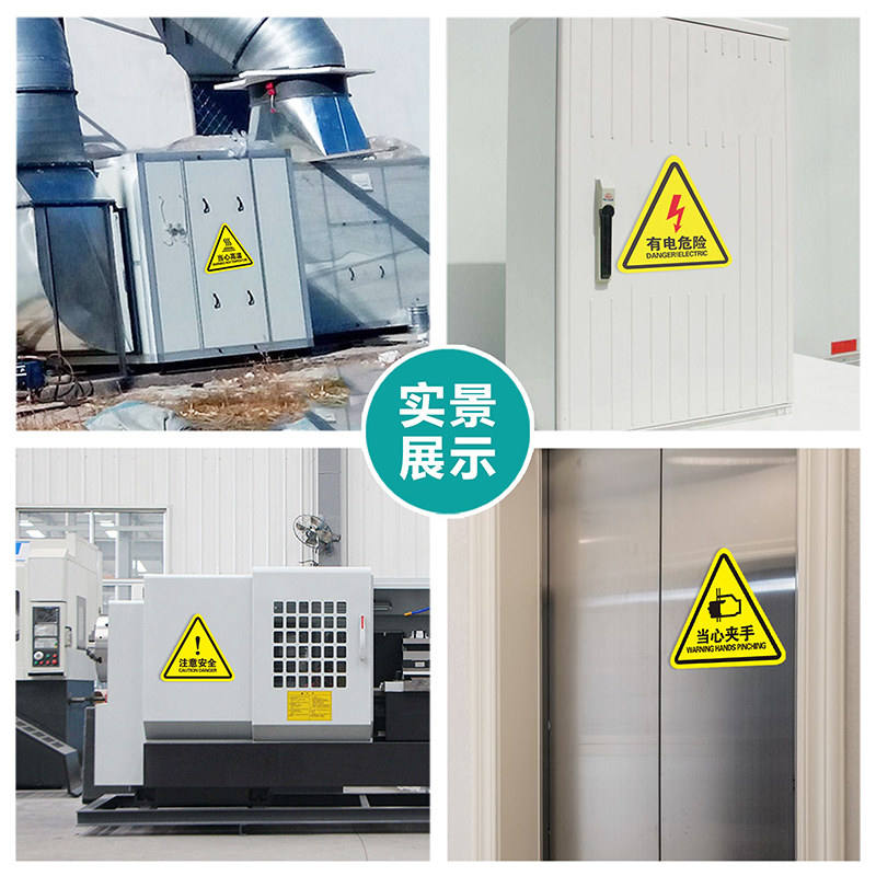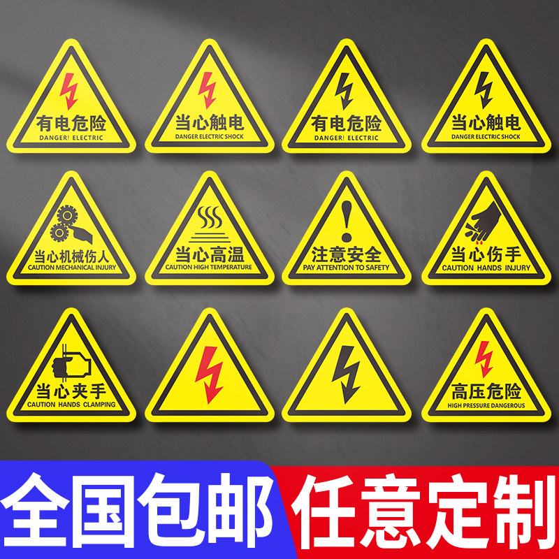 机械设备安全警示标识贴有电危险当心触电注意小心有电闪电高压危险提示标语定制当心机械伤人配电箱标志牌