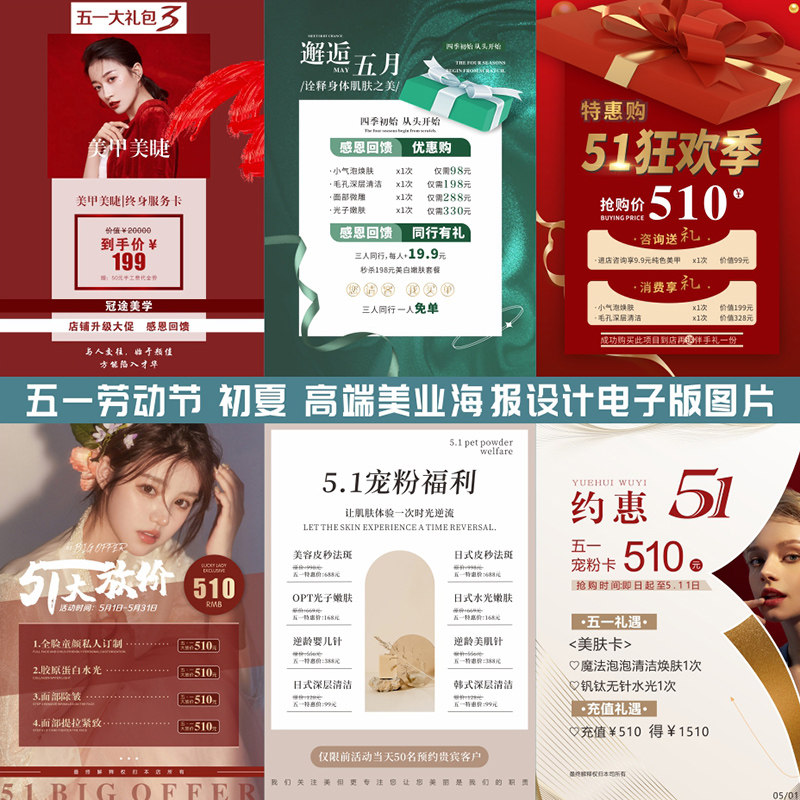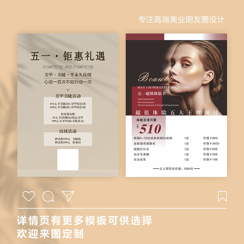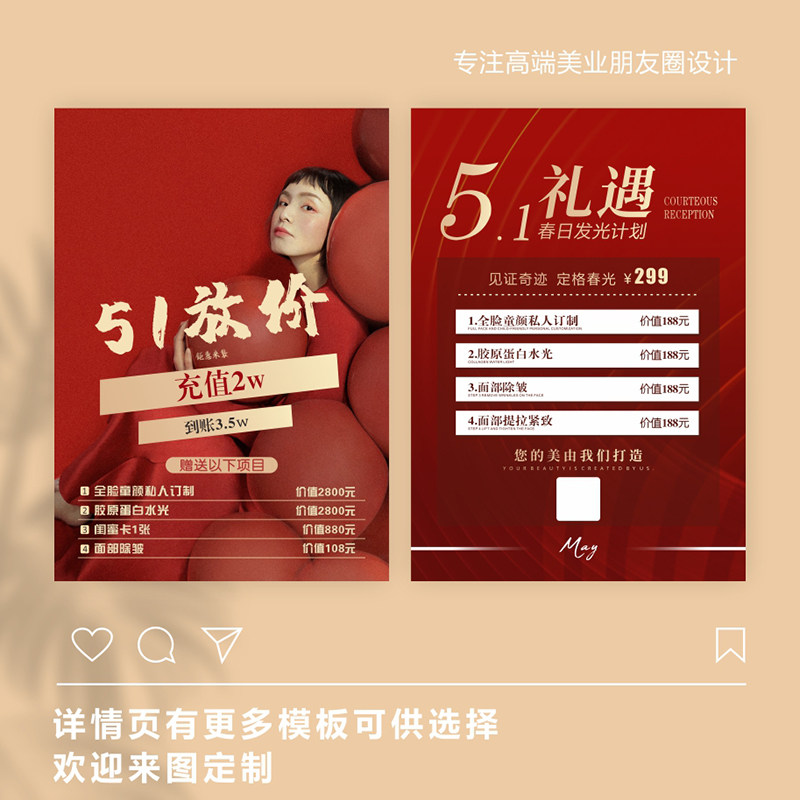51美容院开业活动海报定制美甲美睫会员充值皮肤管理医美周年庆朋友圈纹绣眉眼唇广告宣传美发招聘图片设计