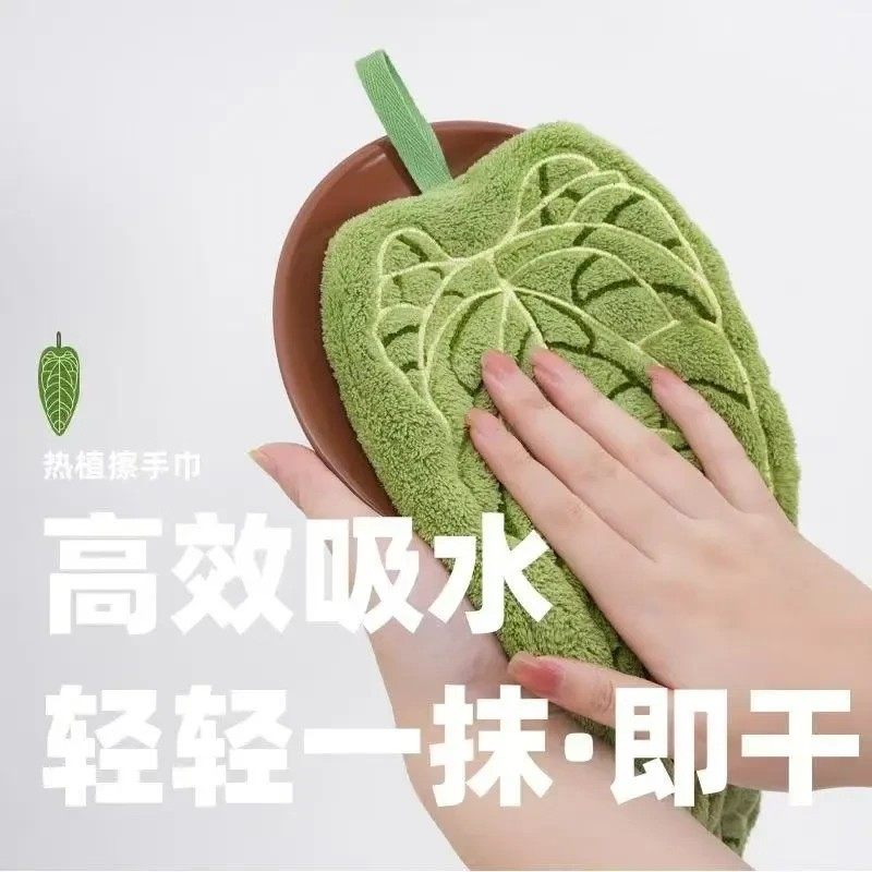 植物叶子擦手巾热植花烛手帕挂式厨房卫生间浴室可爱加厚创意毛巾