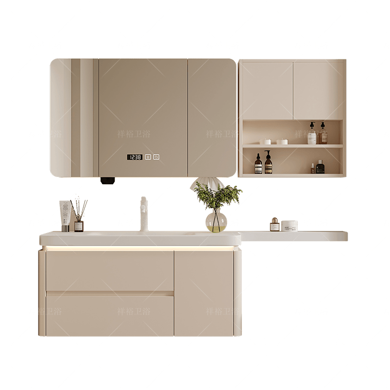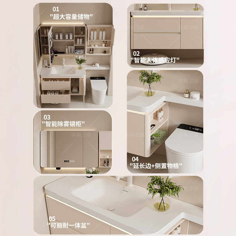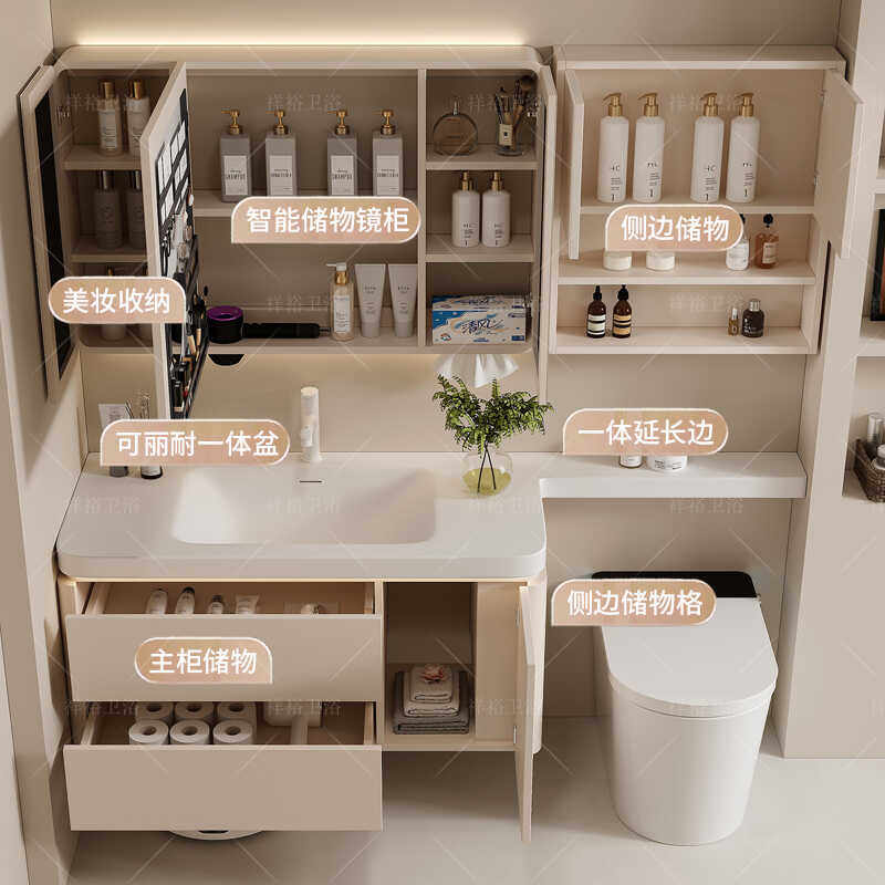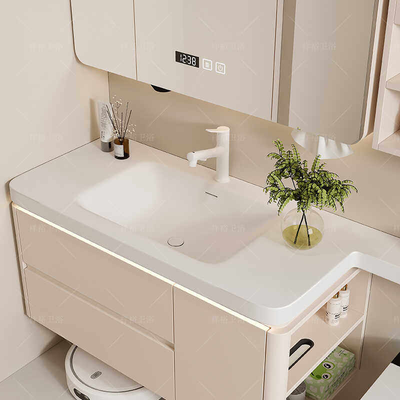 法式奶油风绮美石肤感一体盆卫生间洗漱台延长可定制洗脸池组合