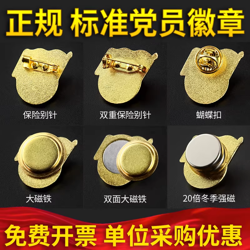 党员徽章强磁2025年新版标准型别针式吸铁石磁吸强力大磁铁四季款磁扣蝴蝶扣党章盒装加厚不褪色正版胸章胸针