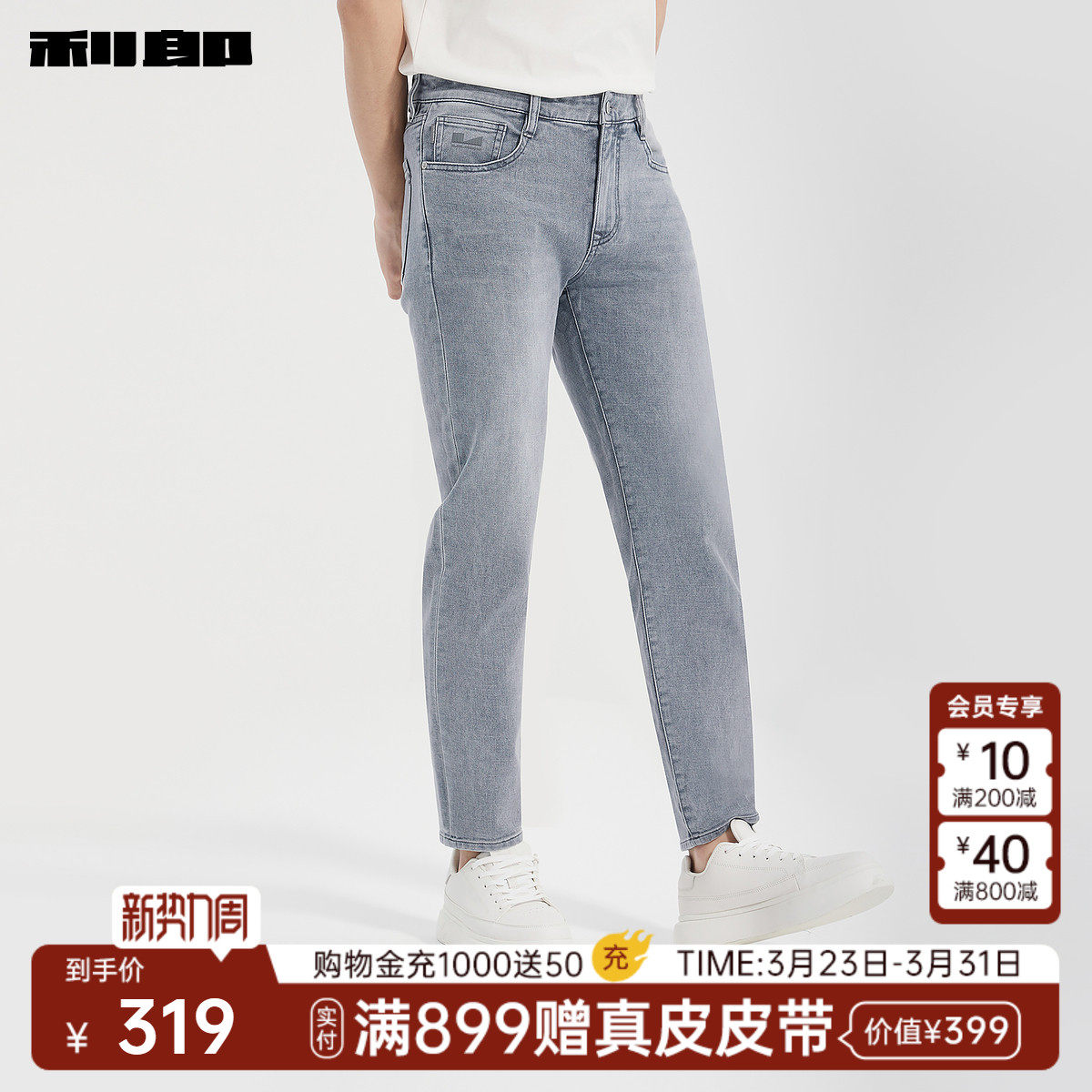 【九分裤】利郎官方 牛仔裤男士猫须弹力小脚春季新款裤子男