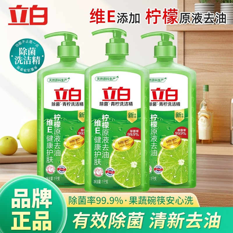 立白青柠洗洁精1kg家用洗碗液商用餐饮厨房餐具柠檬去油果蔬清洁