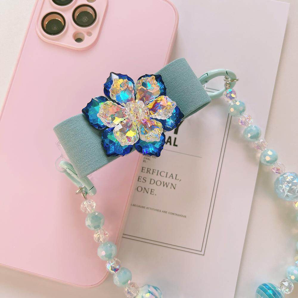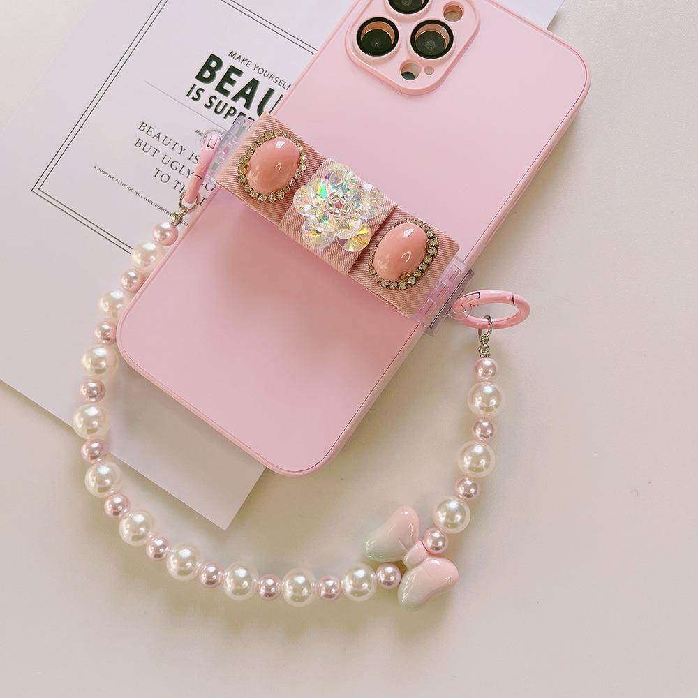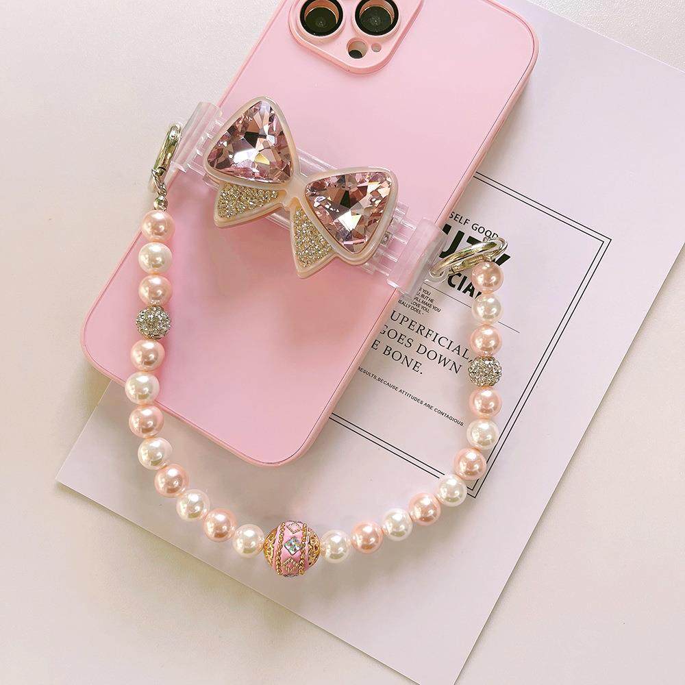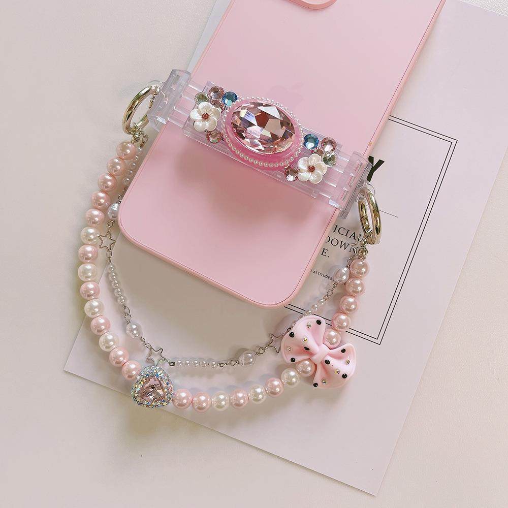 新款锆石手机链个性创意奢华水晶镶钻手机背夹手工串珠珍珠链条女