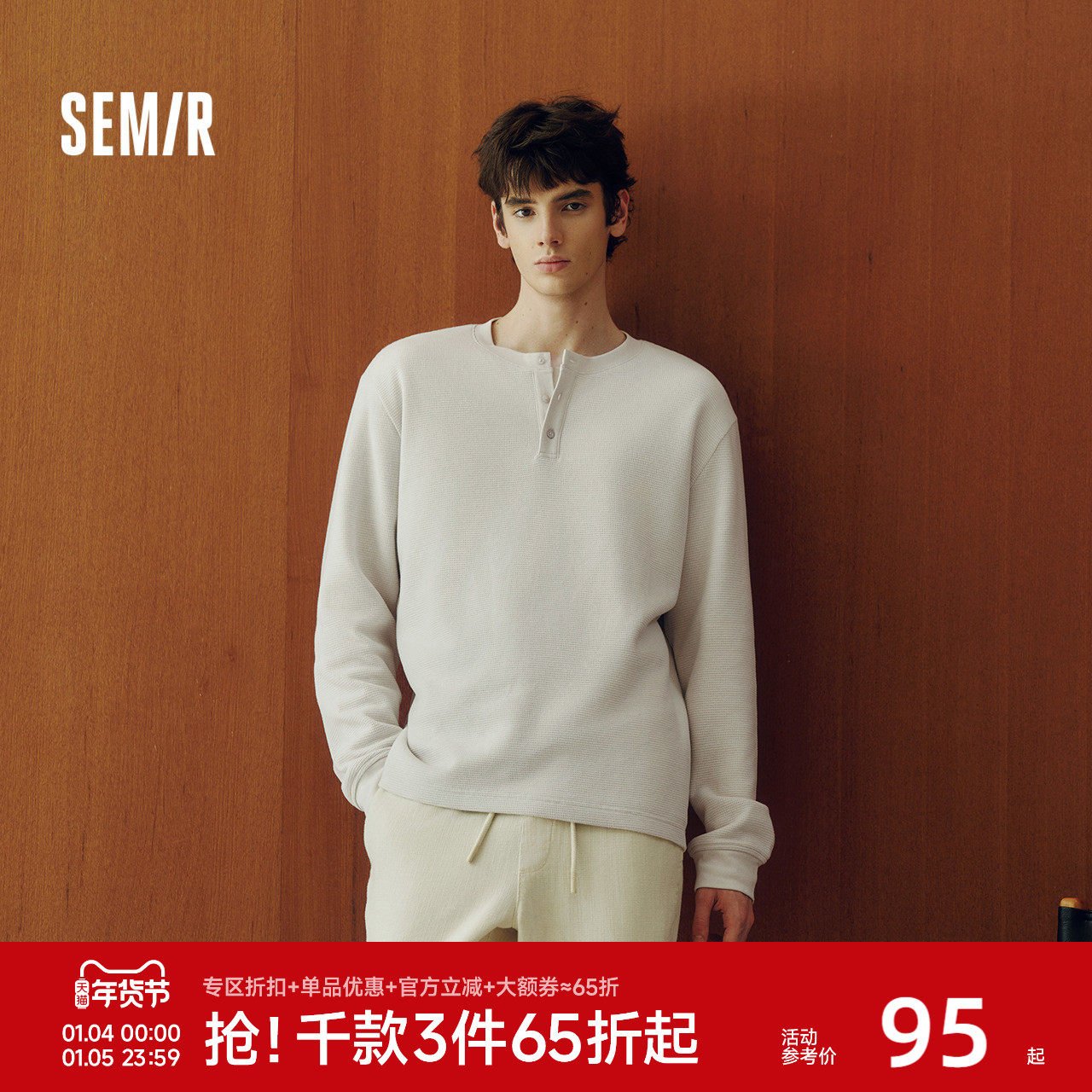 森马长袖T恤男华夫格纯色百搭打底衫冬季2025新款内搭上衣亨利领