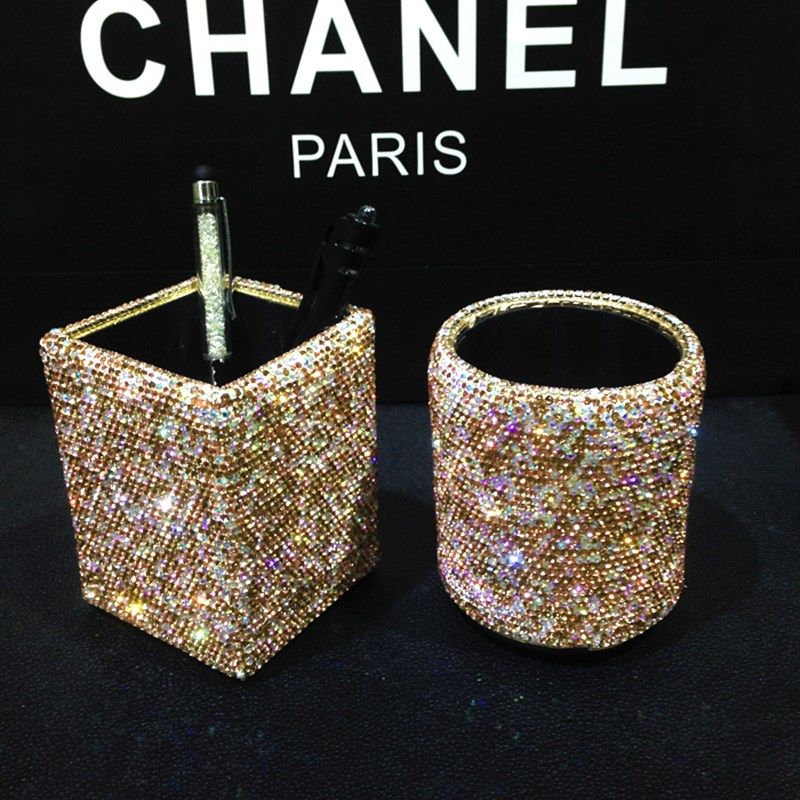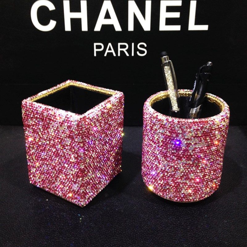 新款水钻笔筒 韩国贴钻创意时尚化妆刷眉笔粉刷笔桶 镶钻办公摆件