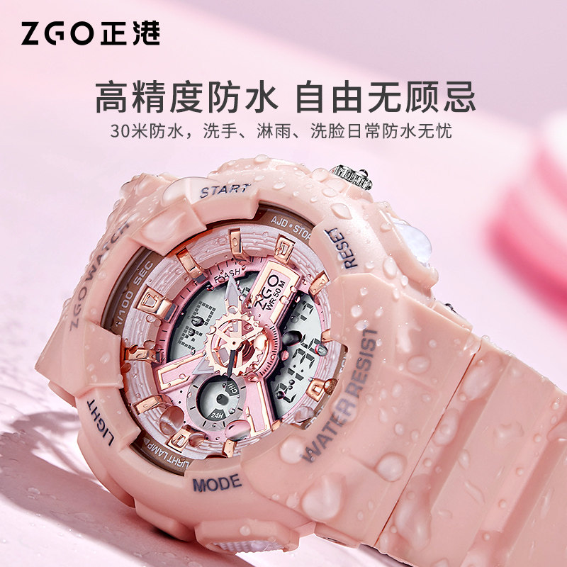 正港ZGO适合初中生的手表女学生儿童女孩女生运动机械电子表防水