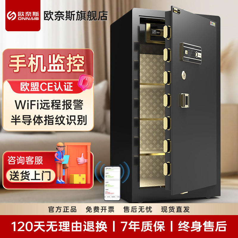 欧奈斯指纹保险柜家用密码办公室150cm入墙单门保险箱双锁大型箱柜1.5米1.8m保管箱全钢加厚防盗文件柜搬不走