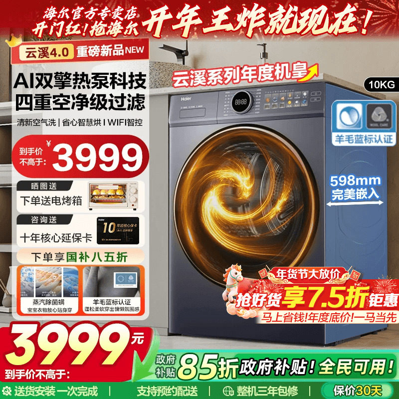 【云溪4.0】海尔双擎热泵烘干机10KG大容量家用全自动干衣机77E