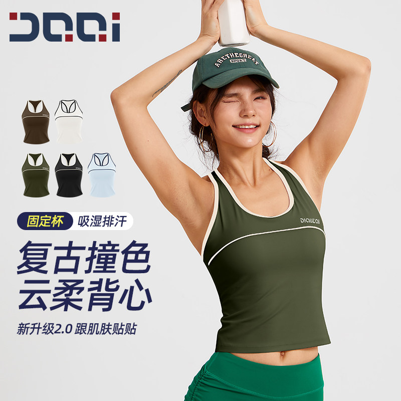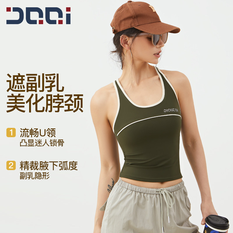 的确奇长款轻运动背心女一体杯内衣健身服上衣外穿文胸美背防震