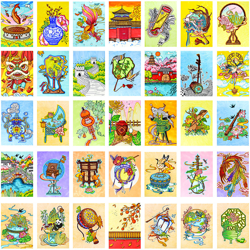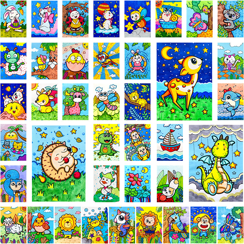 画室创意少儿美术临摹卡儿童画范画马克笔中国风国潮绘画素材卡片