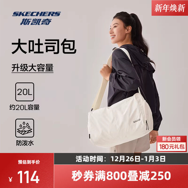 斯凯奇吐司包2025新品男女同款大容量斜挎包轻柔肤感运动包包