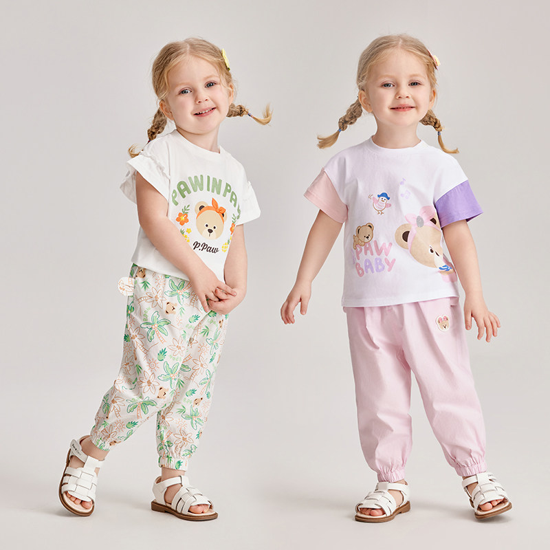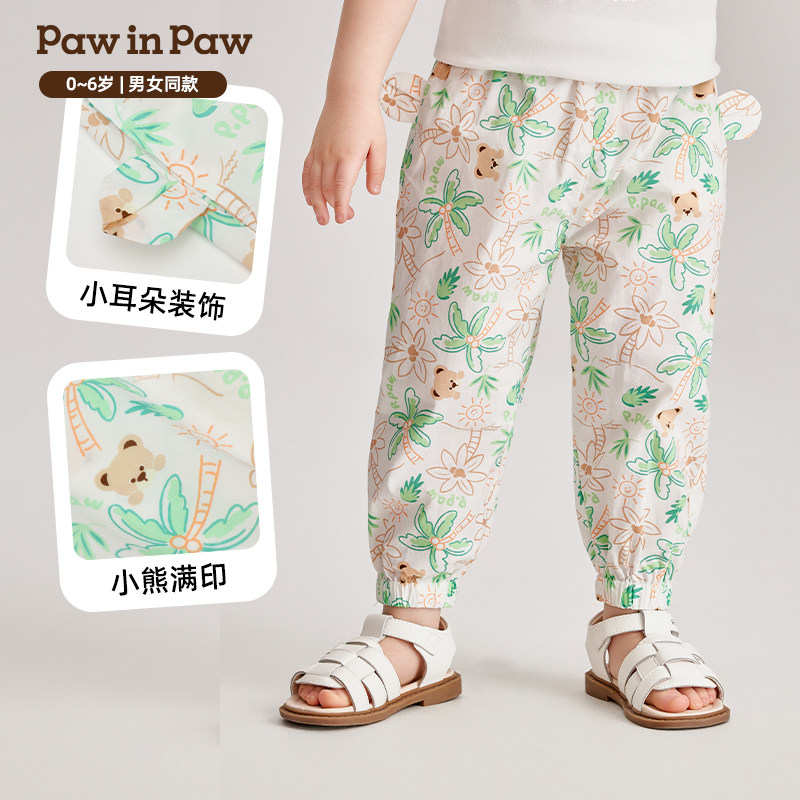 PawinPaw卡通小熊童装夏男女宝宝纯棉束脚裤家居外出防蚊裤