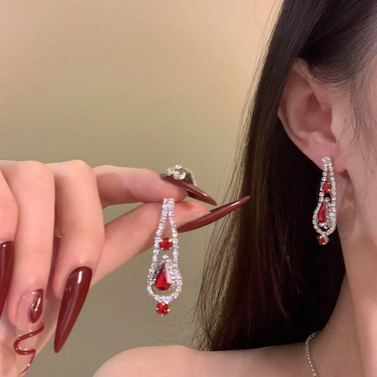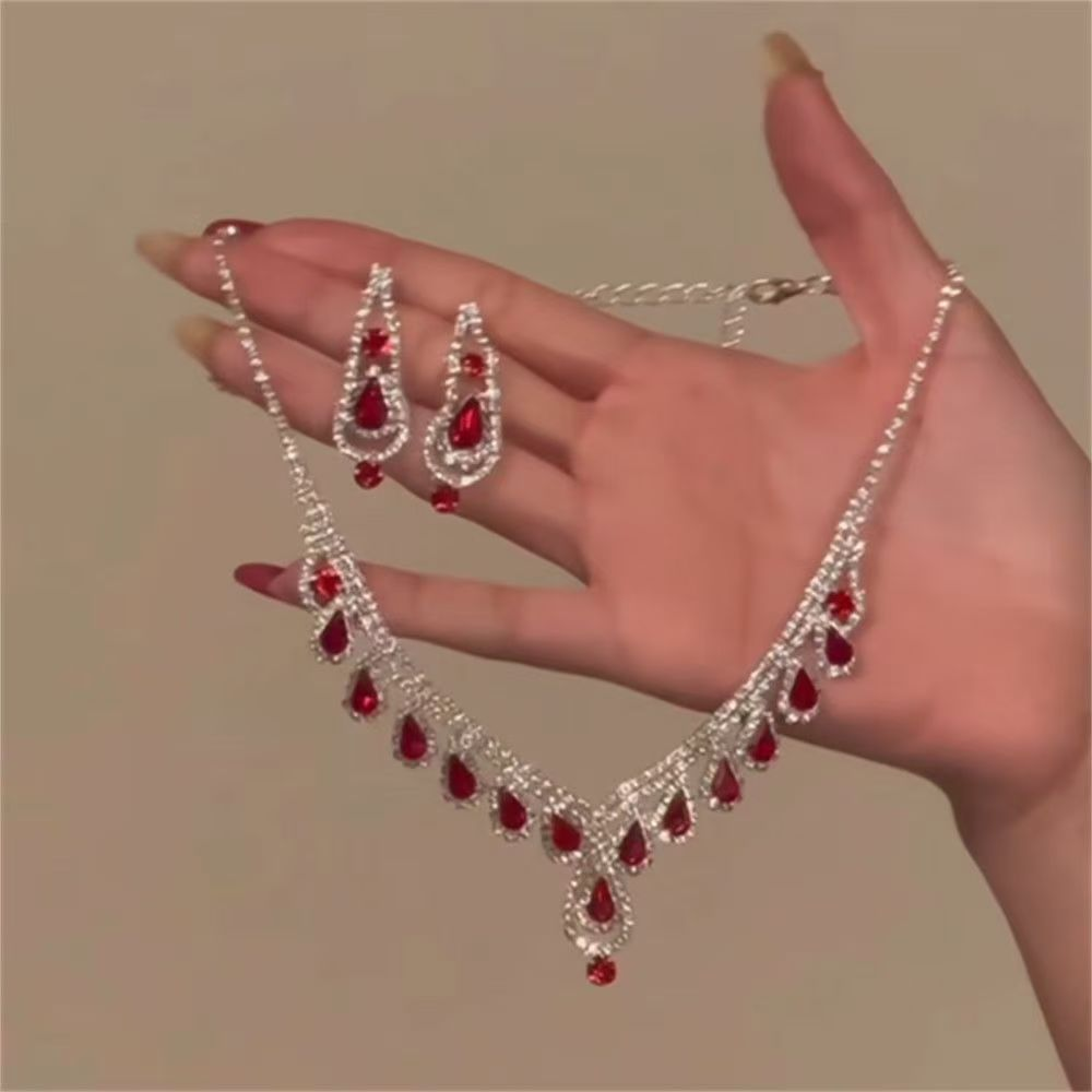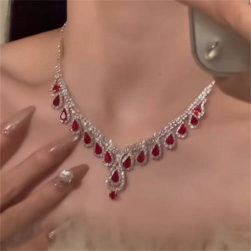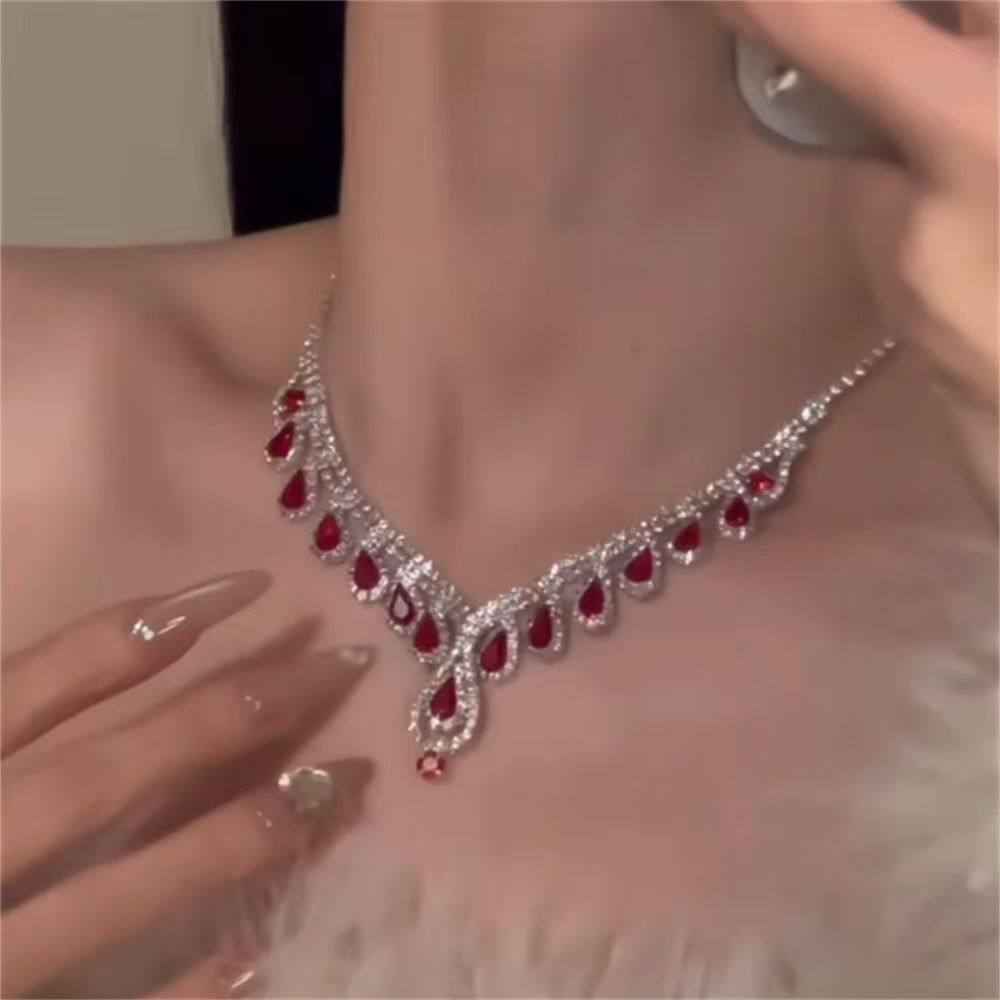 zoozmomo超闪红色锆石项链耳环女新娘晚礼服锁骨链高级感颈链