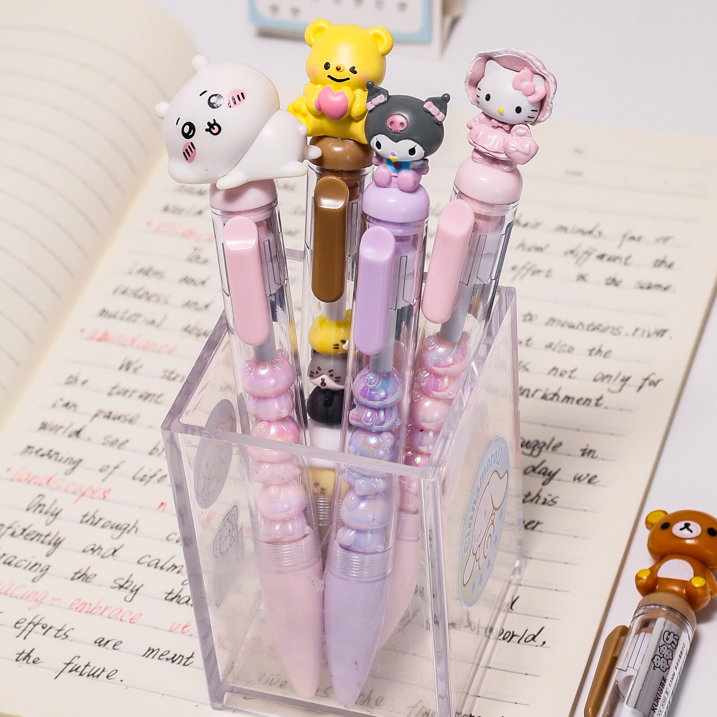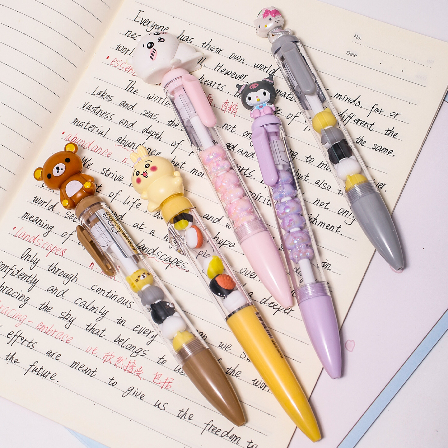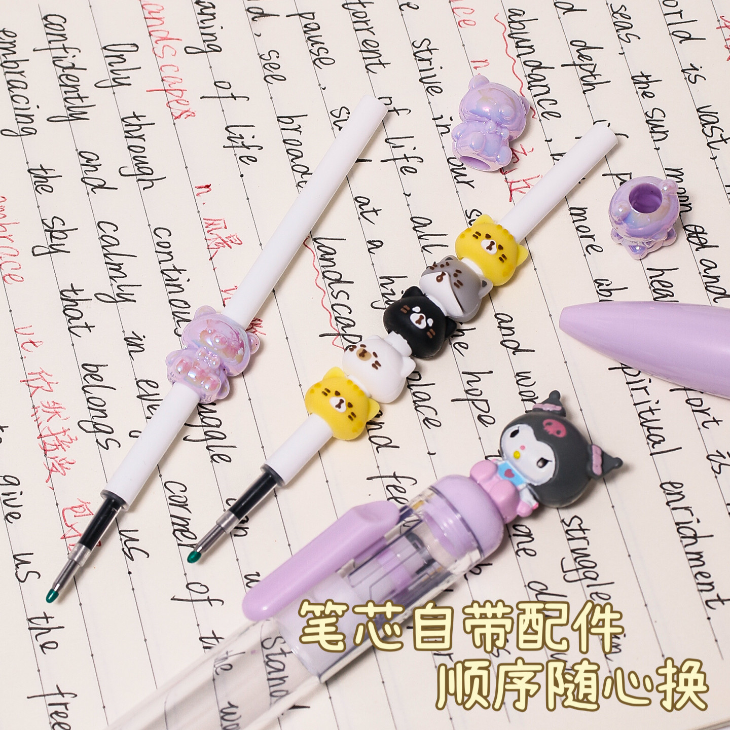 创意公仔串串中性笔卡通可爱学生个性签名笔叠叠装饰DIY黑按动笔