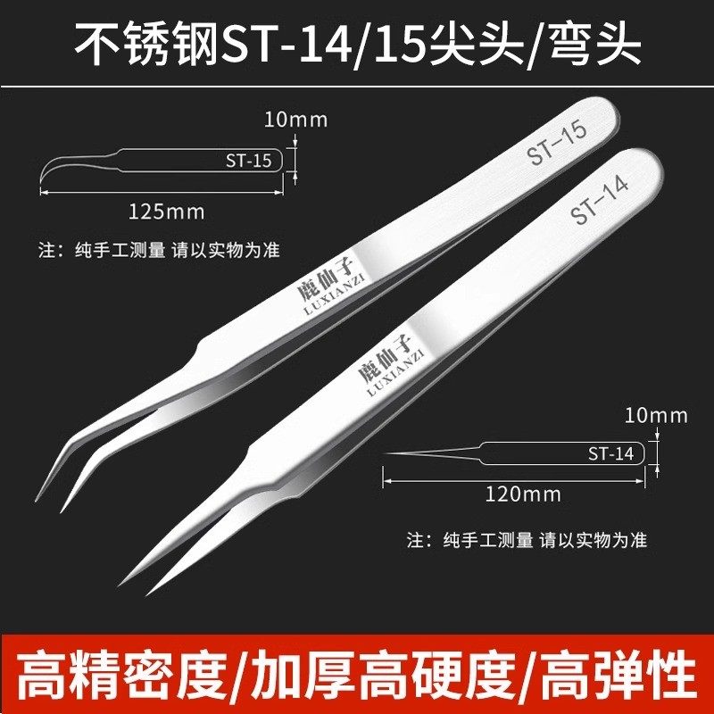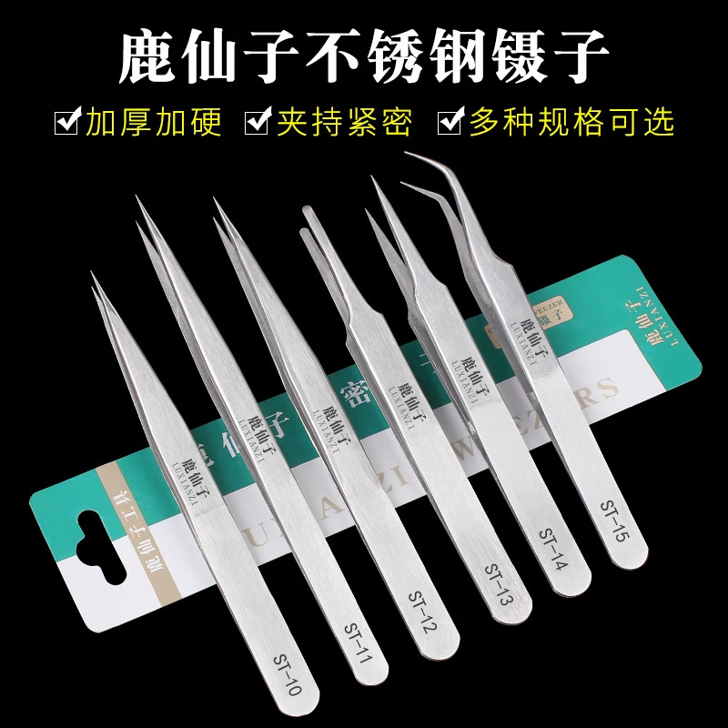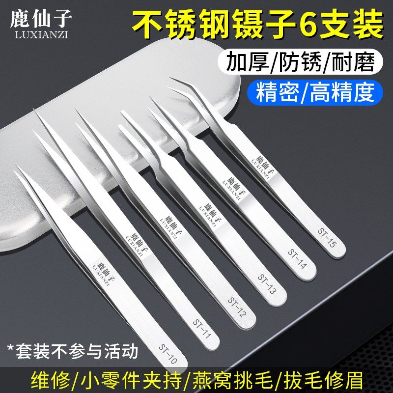鹿仙子不锈钢镊子燕窝挑毛小夹子尖头弯头防静电手机维修工具套装