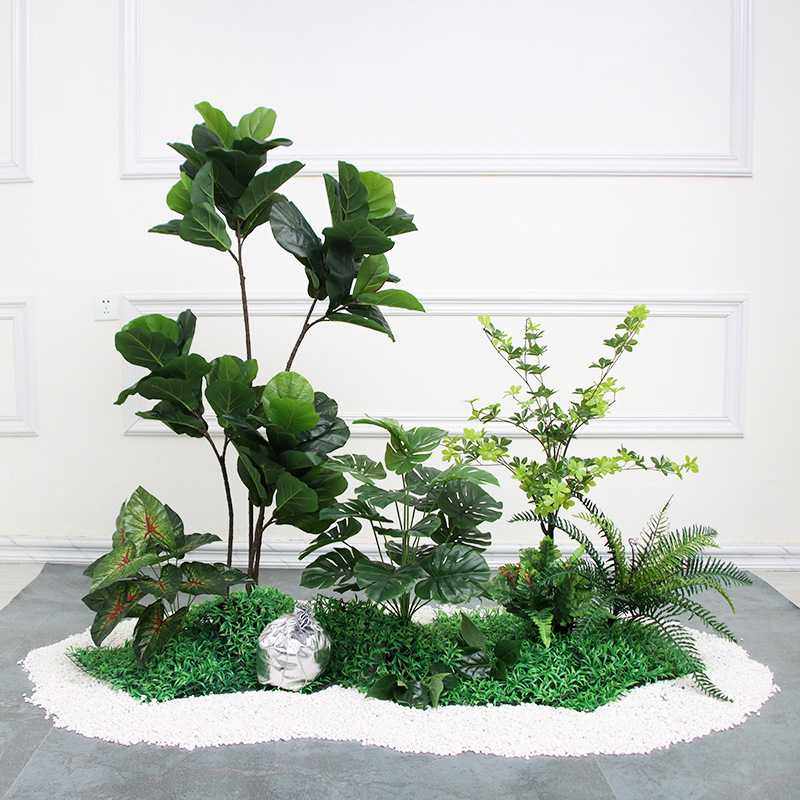 室内楼梯下造景空间转角仿真绿植盆栽假树仿真树景观植物造景装饰