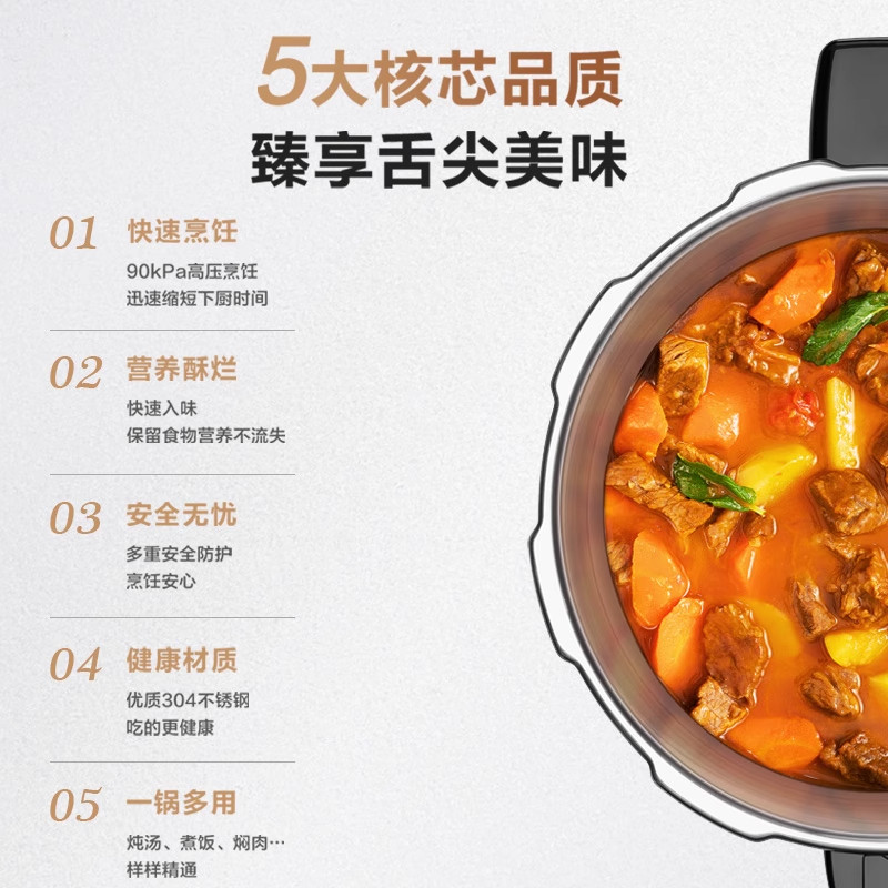 【新品TJ】苏泊尔官方旗舰店304不锈钢压力锅家用燃气防爆高压锅