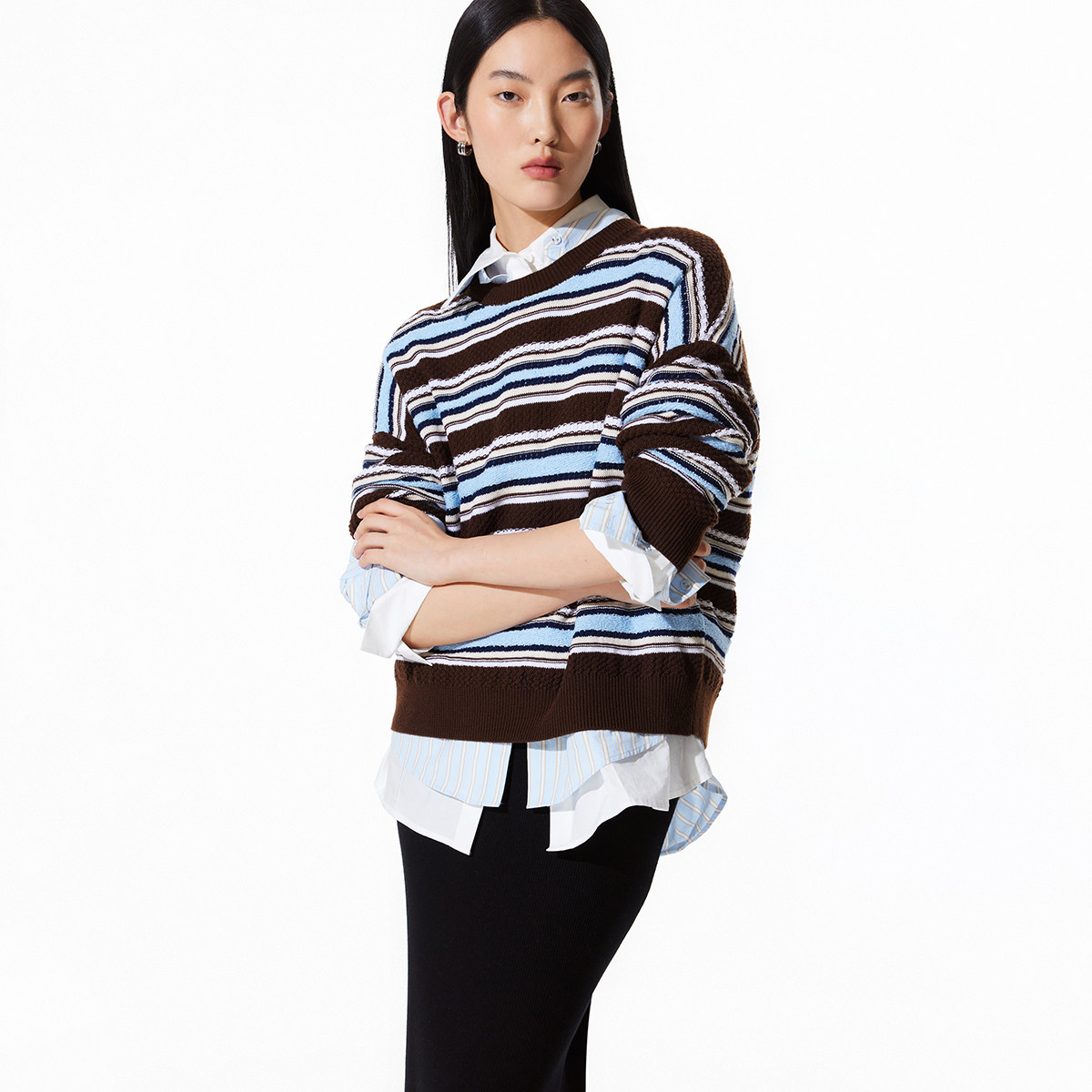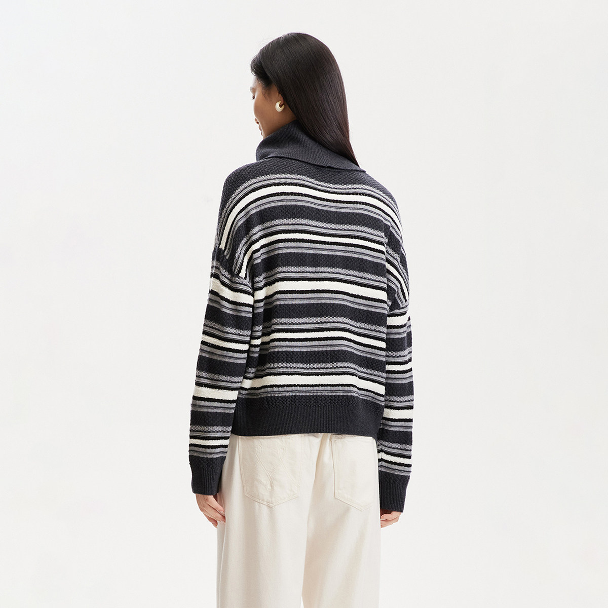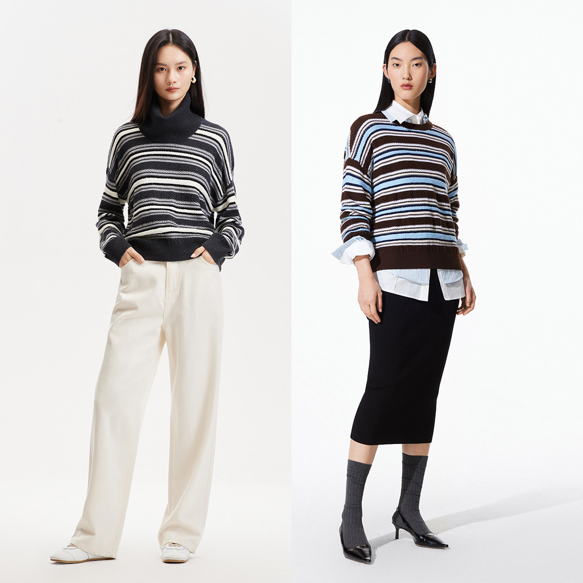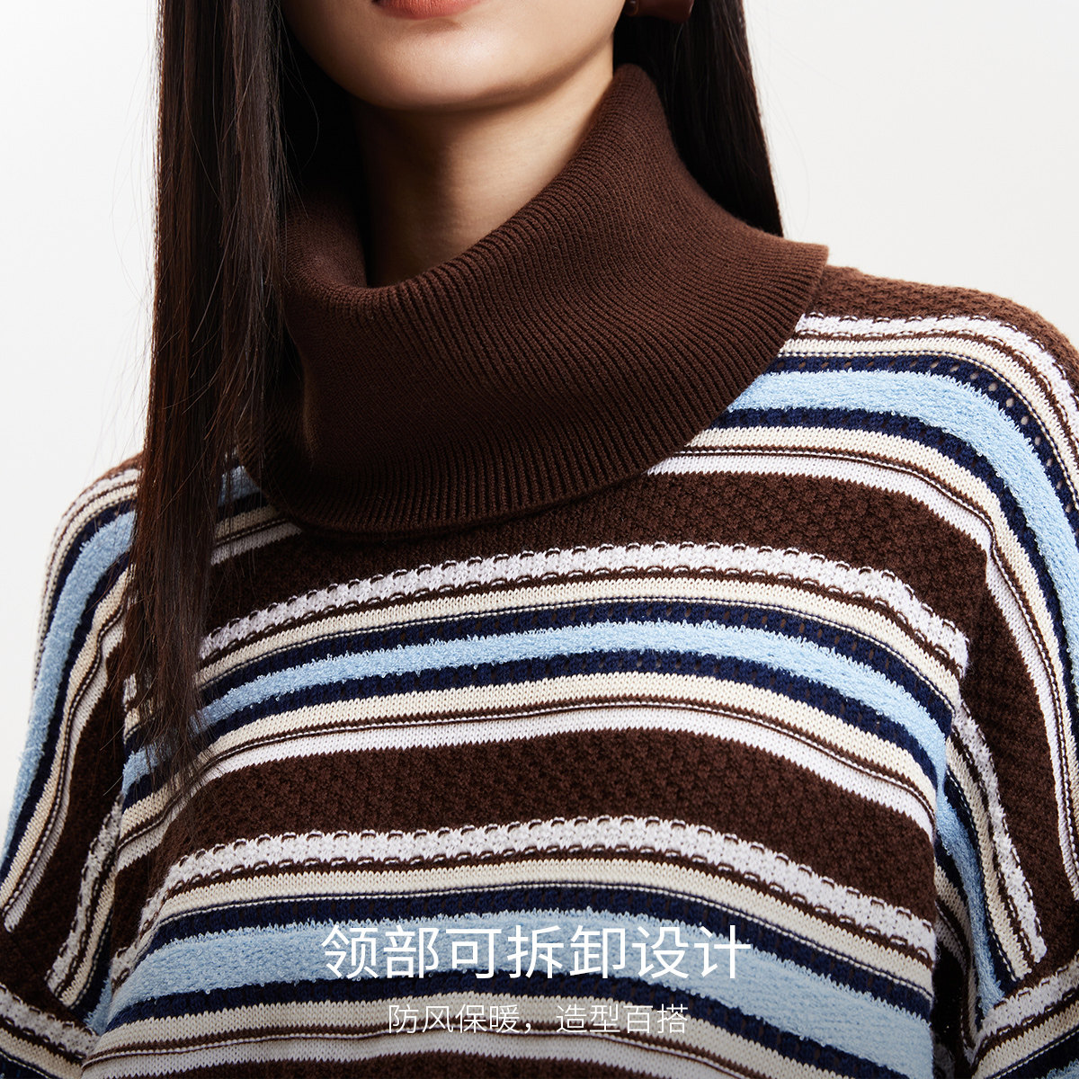 Vero Moda奥莱针织衫女2025秋冬新款商场同款高领撞色条纹毛衣