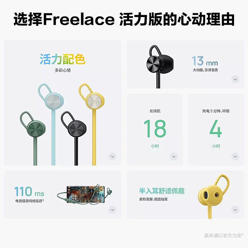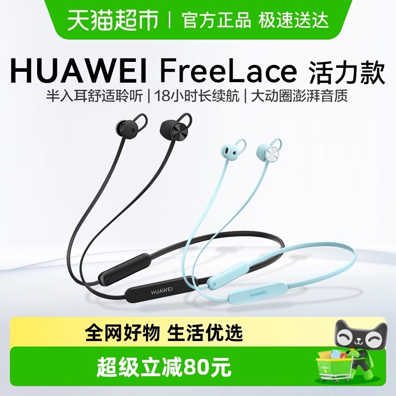 华为FreeLace活力款无线蓝牙耳机挂脖半入耳式长续航亲肤运动耳机