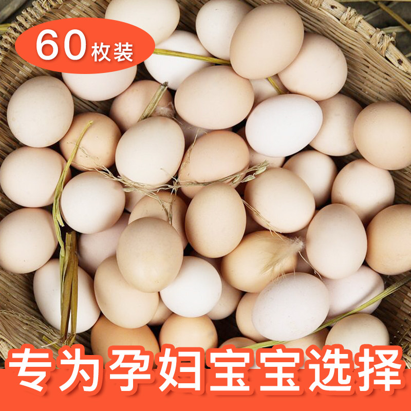 农家散养走地鸡新鲜食用蛋不喂饲料谷物喂养60枚草鸡蛋无抗土鸡蛋
