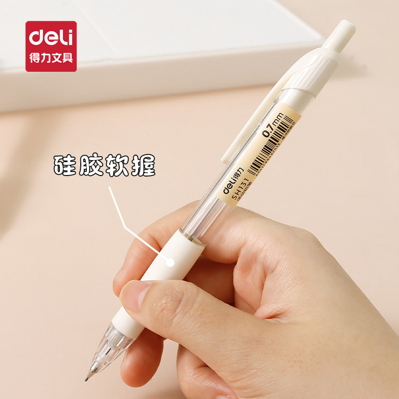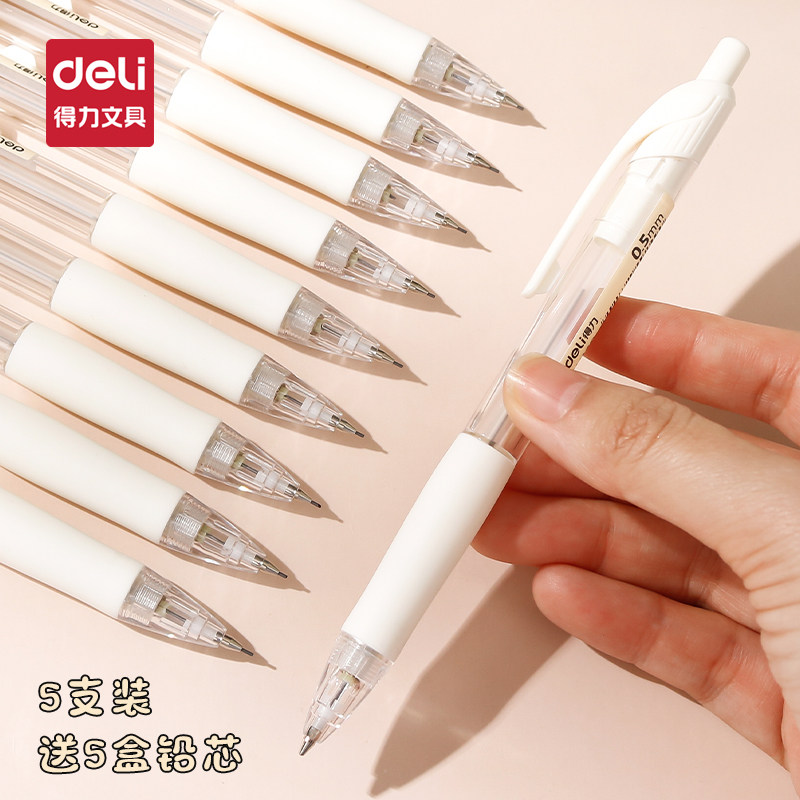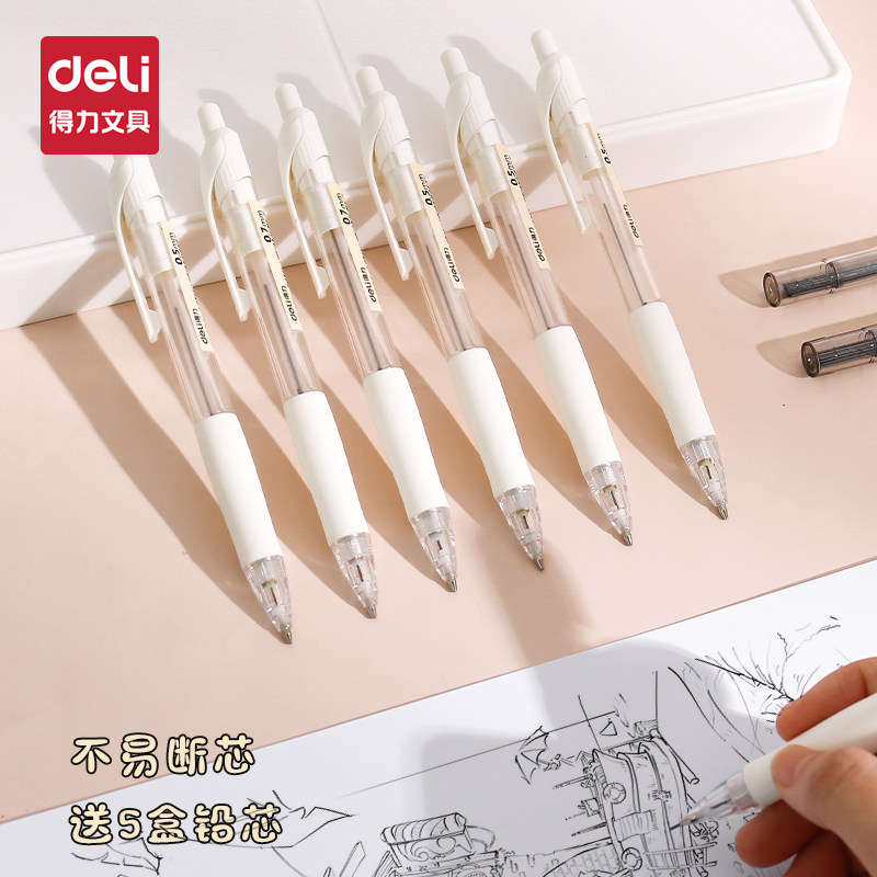 得力正品不易断自动铅笔简约透明正姿学生0.5按动不断芯塑料0.7mm