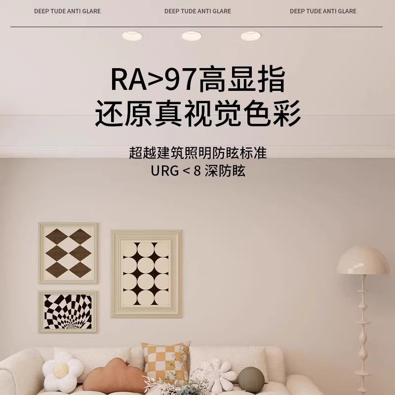 小山丘射灯led嵌入式客厅家用吊顶电视墙cob深杯防眩筒灯全光谱