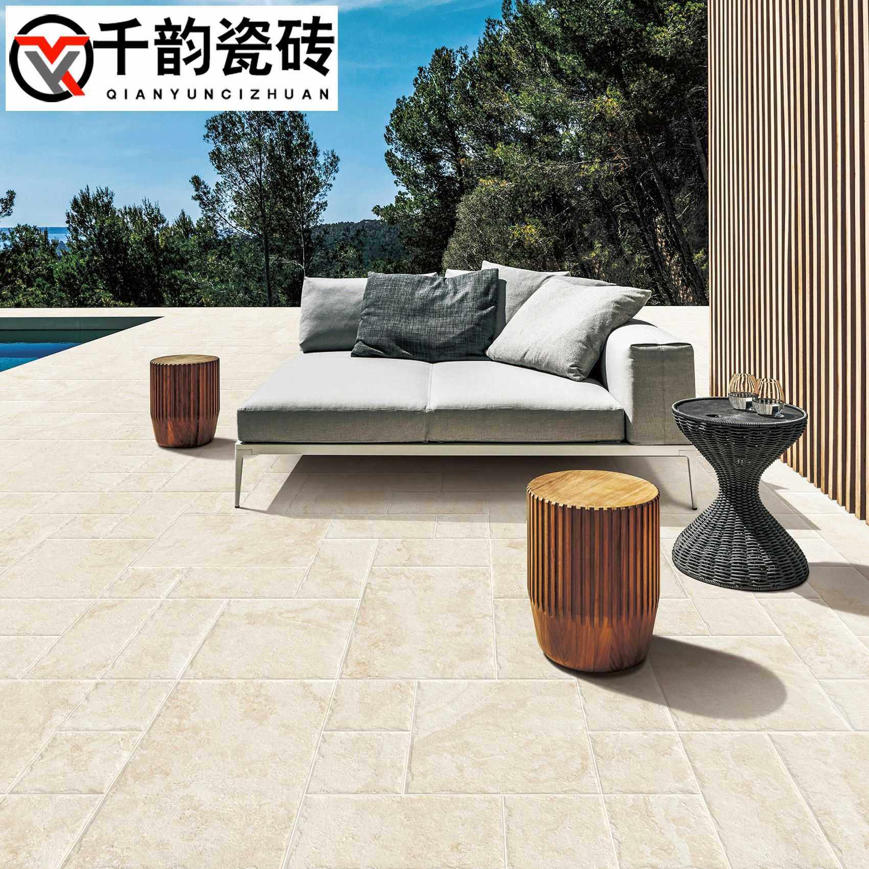 复古莱姆石瓷砖民宿别墅庭院仿古地砖客餐厅哑光防滑地砖古堡砖