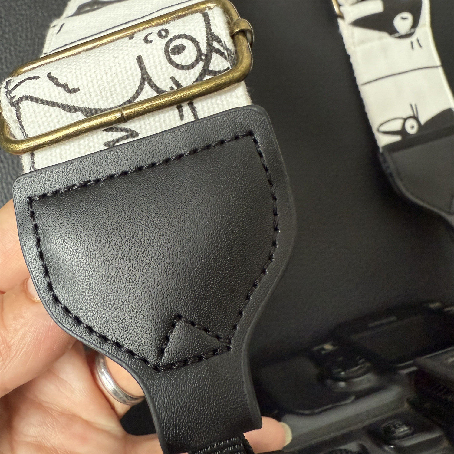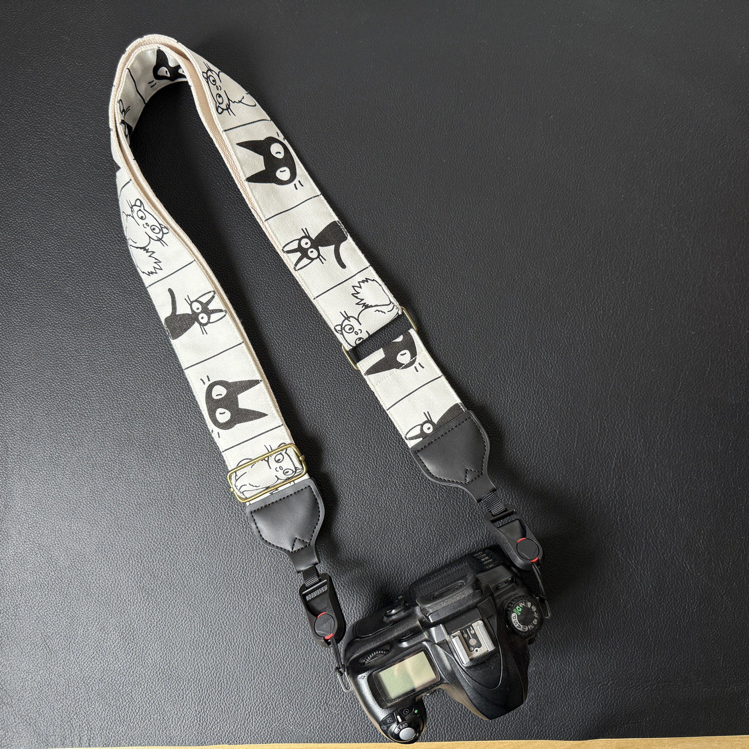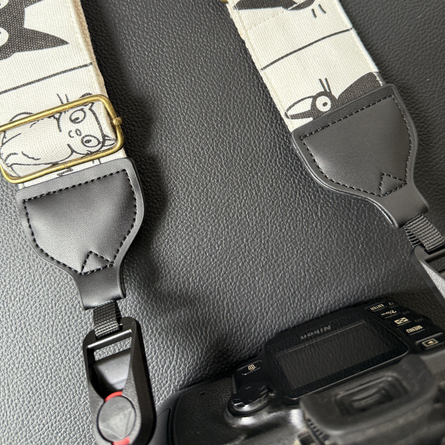 UNIKSTRAP原创加宽简洁卡通猫可调节斜跨快拆相机背带真皮皮头