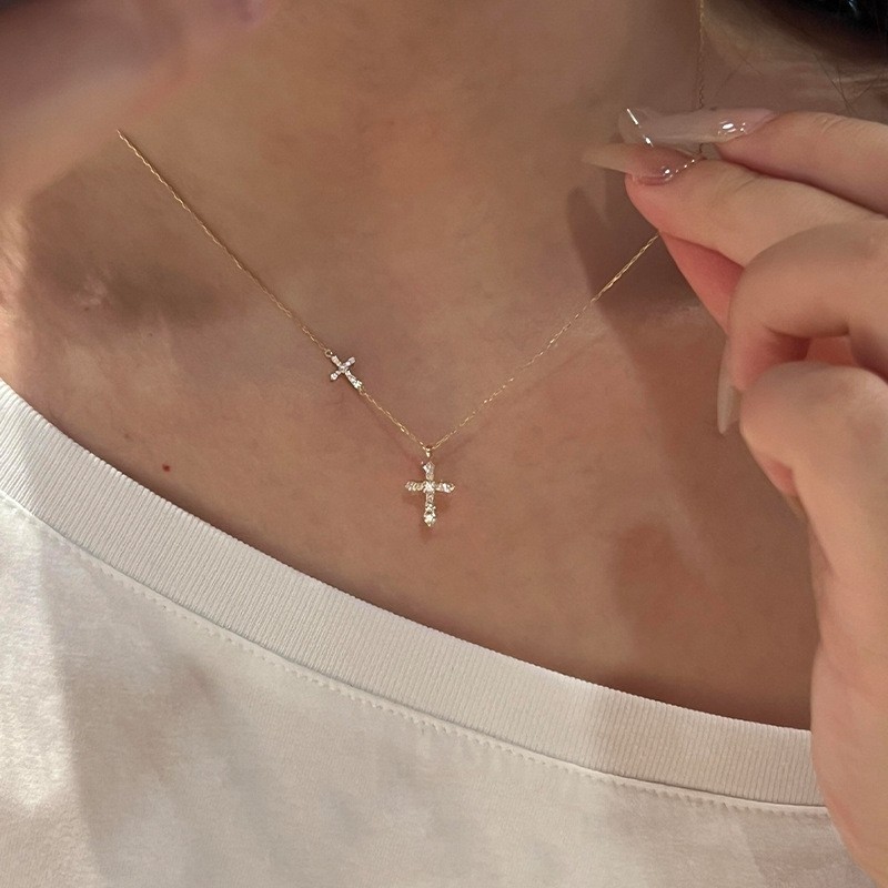 S925纯银双十字架项链女款2025新款配饰高级感轻奢小众复古吊坠