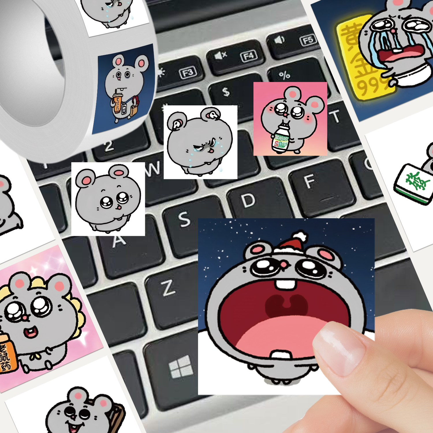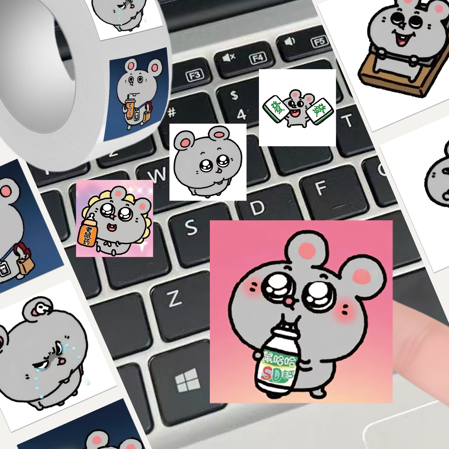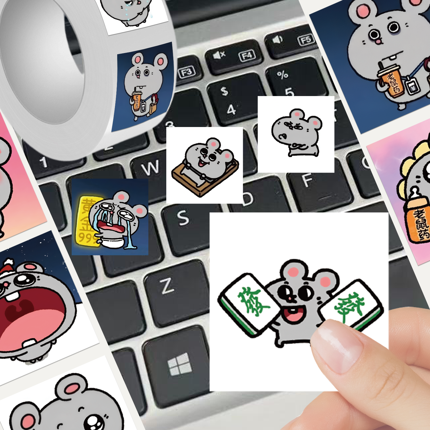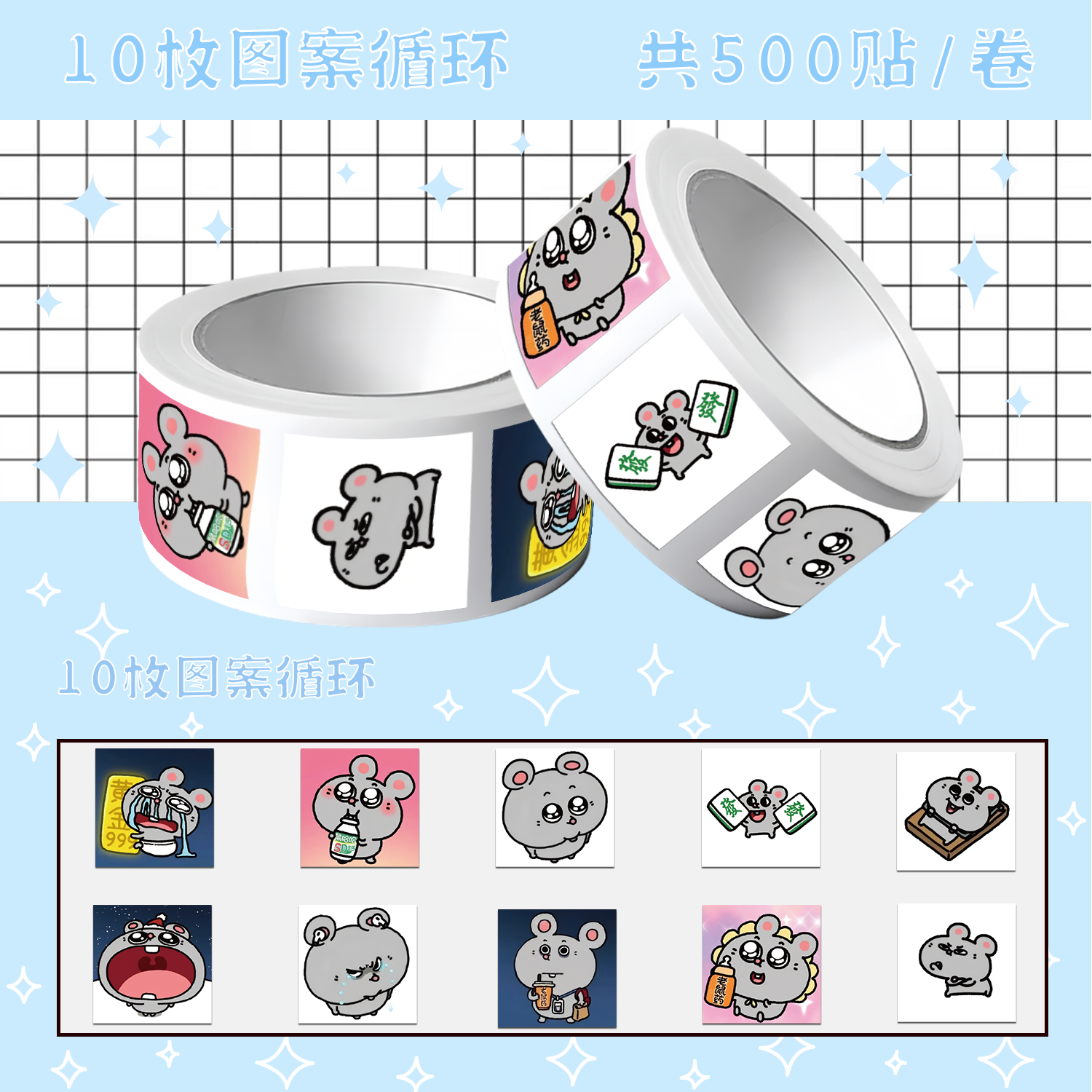 大鼠卷卷贴纸儿童女孩可爱卡通封口贴装饰小图案打包咕卡diy防水贴画