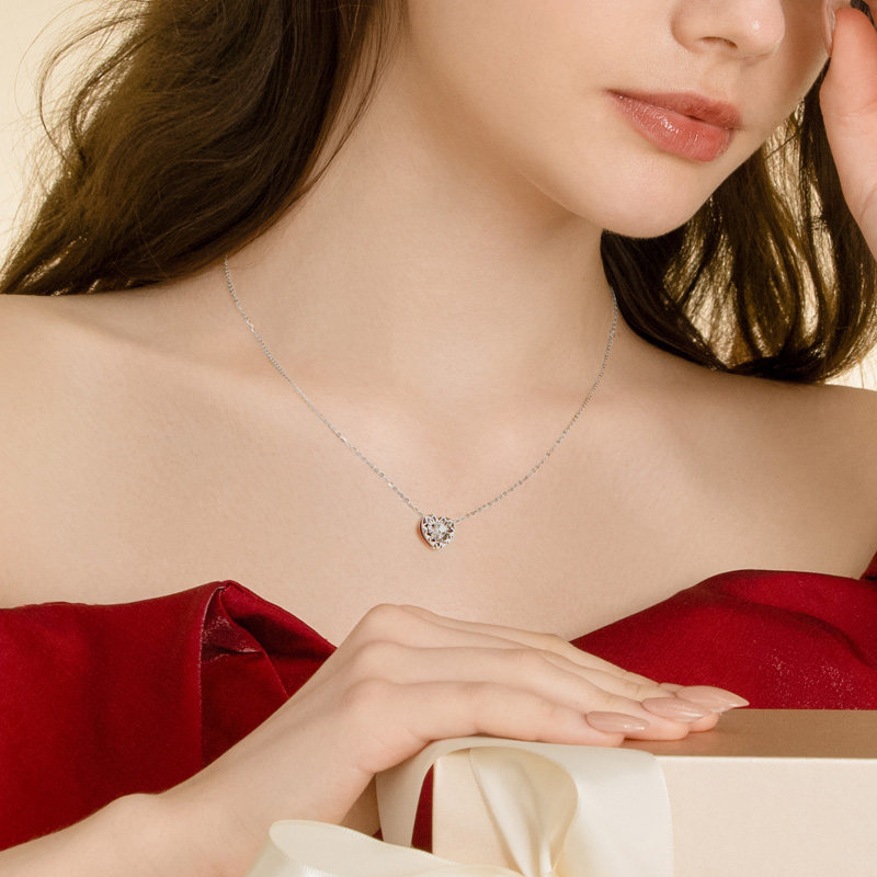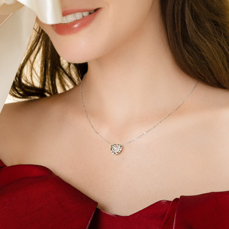 【商场同款】莱绅通灵吊坠节 蓝色火焰小真心 18K金钻石项链
