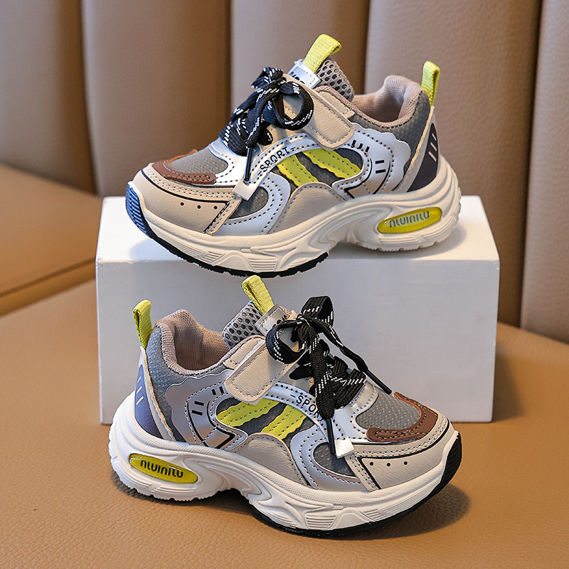小黄鸭2025春秋季新款女童鞋子男童皮面防水老爹鞋儿童休闲运动鞋