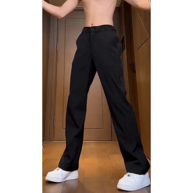 黑色微喇西裤男生修身直筒休闲长裤弯刀男士秋冬加绒加厚西装裤子