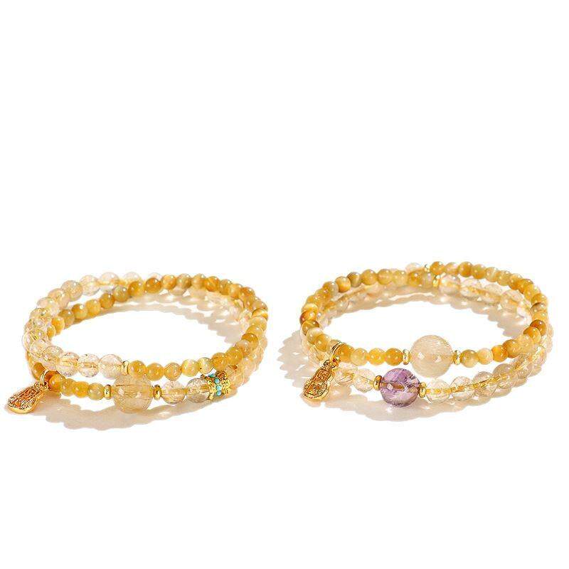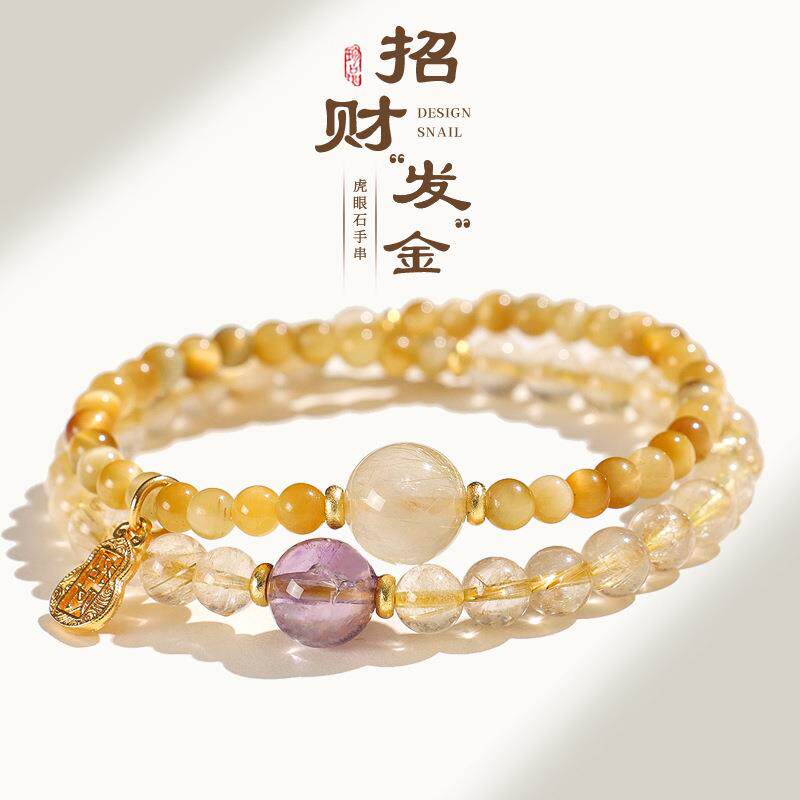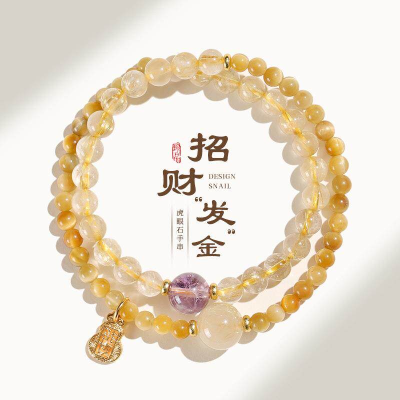 天然金发晶招财串珠双圈手链女时尚高级感金虎眼紫水晶手串虎眼石
