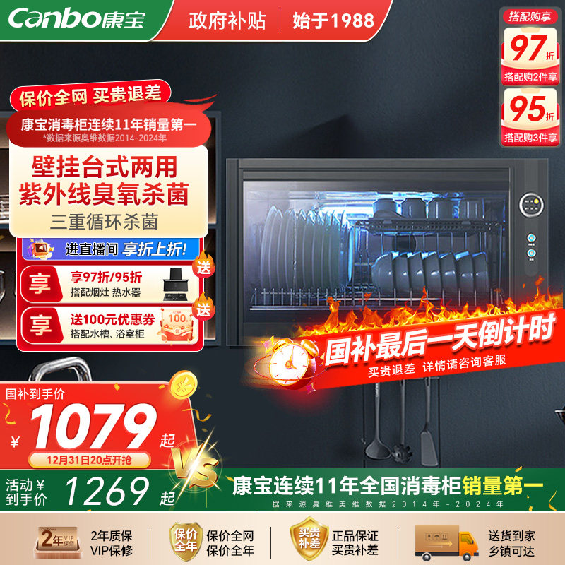 康宝WA3A壁挂式卧式迷你家用台式消毒柜幼儿园厨房碗筷餐具碗柜
