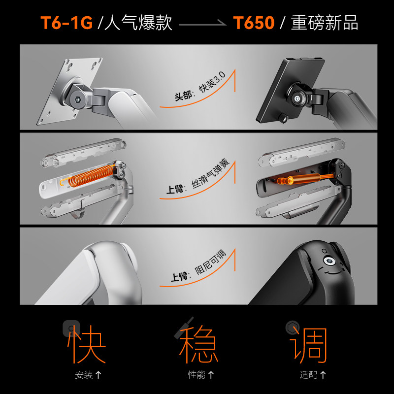 五轴联动调节 30S两步快装 精致铝材打造
