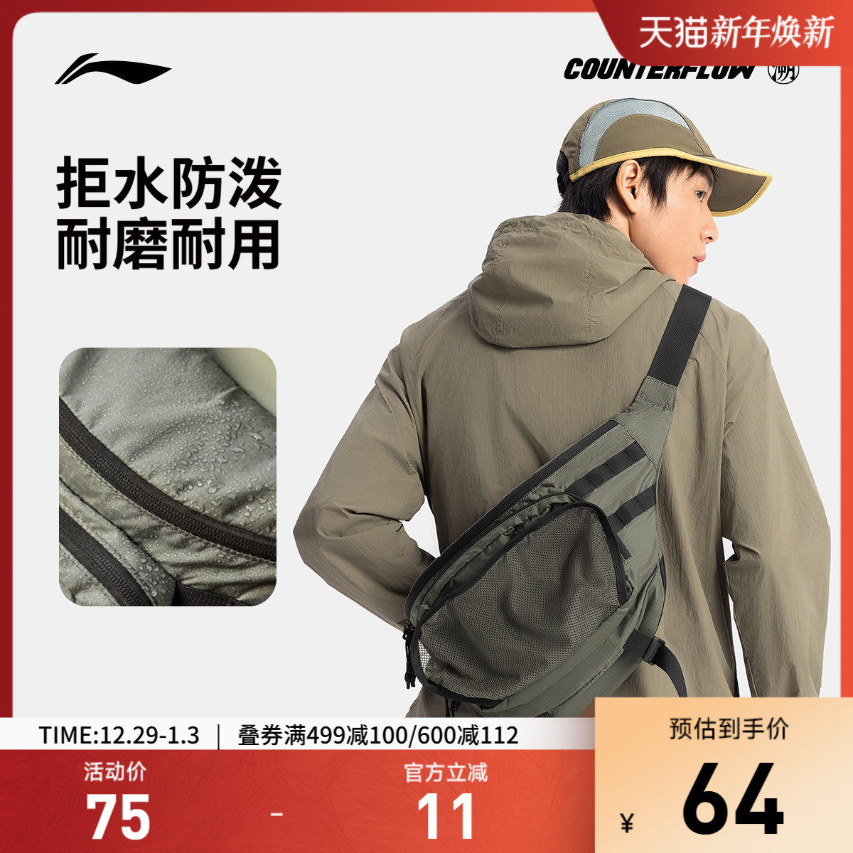 李宁户外CF溯丨腰包男女户外时尚潮流简约百搭运动休闲包男女士