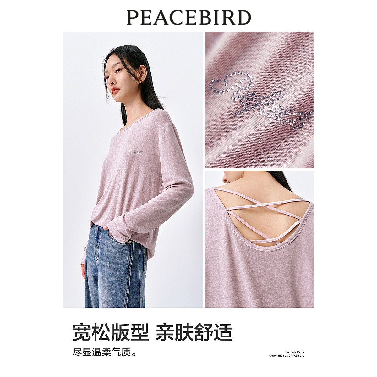 太平鸟长袖薄款针织罩衫夏新款宽松简约T恤女含羊毛上衣亲肤