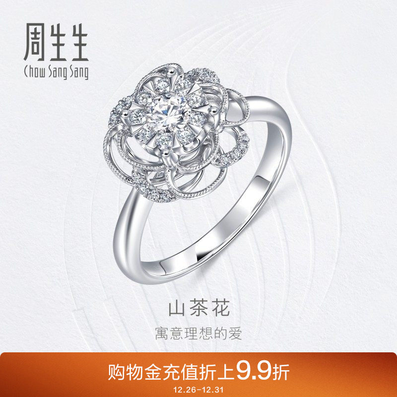 周生生18K金白色黄金钻之颂花悦之颂钻石戒指85670R