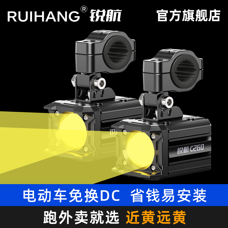 锐航C260摩托车电动车外置踏板专用激光射灯强光款远近光透镜射灯