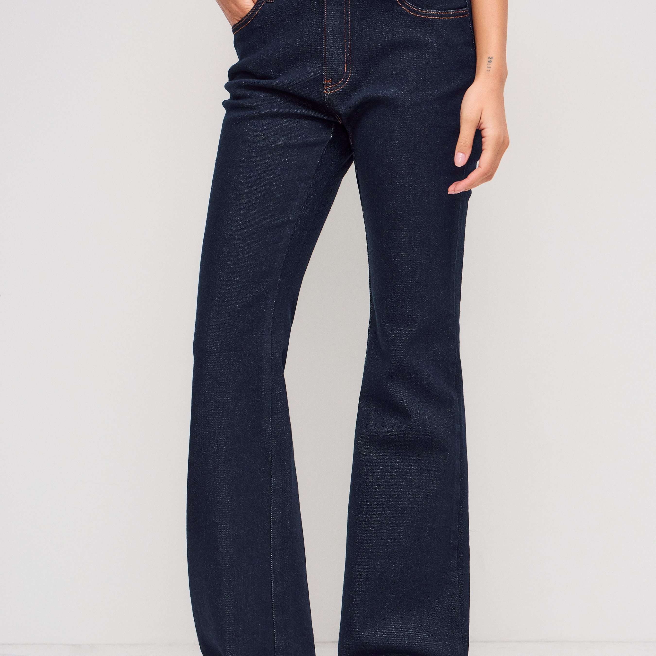 twosweet【超级裤神】四面弹重塑大长腿高腰直筒微喇叭原色牛仔裤