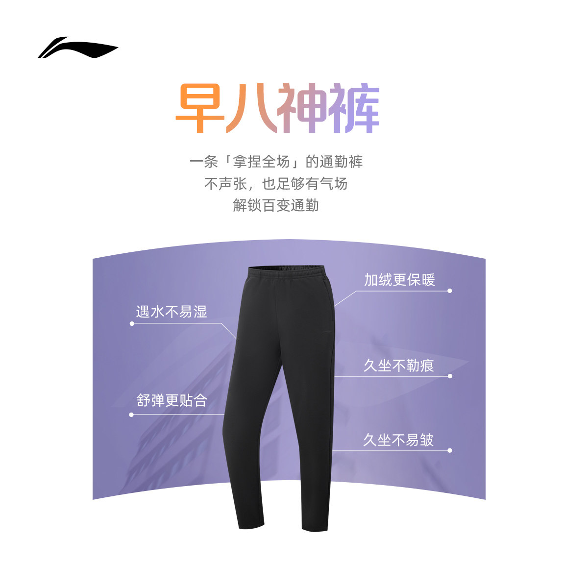 李宁热力裤丨运动裤女士新款健身跑步长裤冬季加绒保暖梭织运动裤