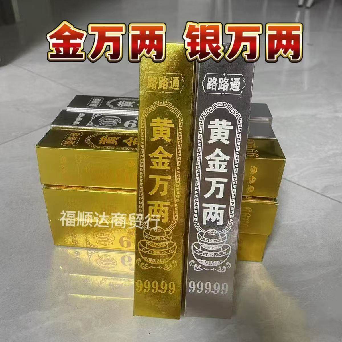 加厚高亮硬卡纸大金条大银条金条金砖祈福聚宝盆批发厂家送礼礼品家居摆件高亮黄金万两制作工艺品半成品发货