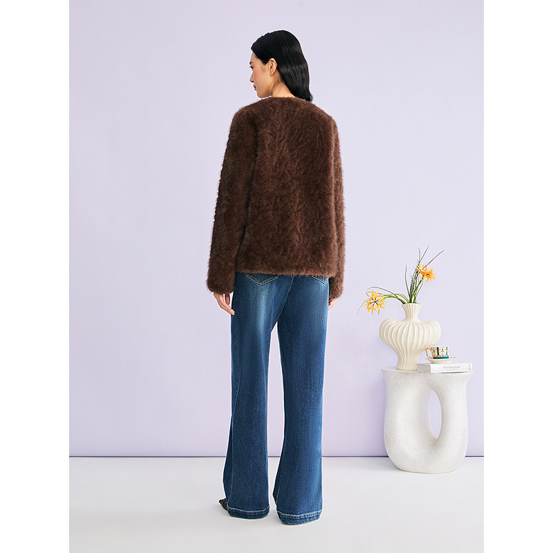 YINER音儿专选2025冬季新款法式优雅利落H型圆领环保皮草短外套