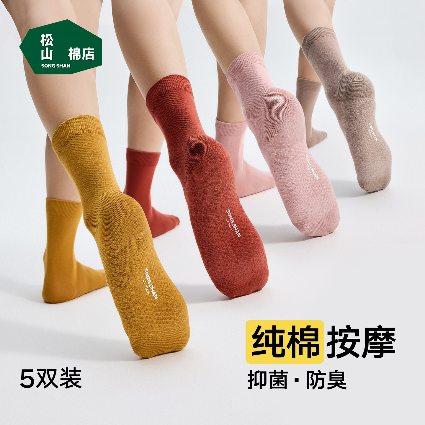 松山棉店足底按摩袜子纯棉抗菌防臭男女短袜中筒袜长筒夏薄款棉袜