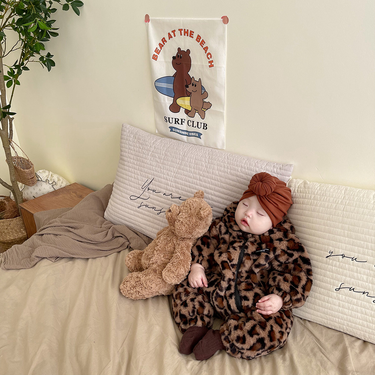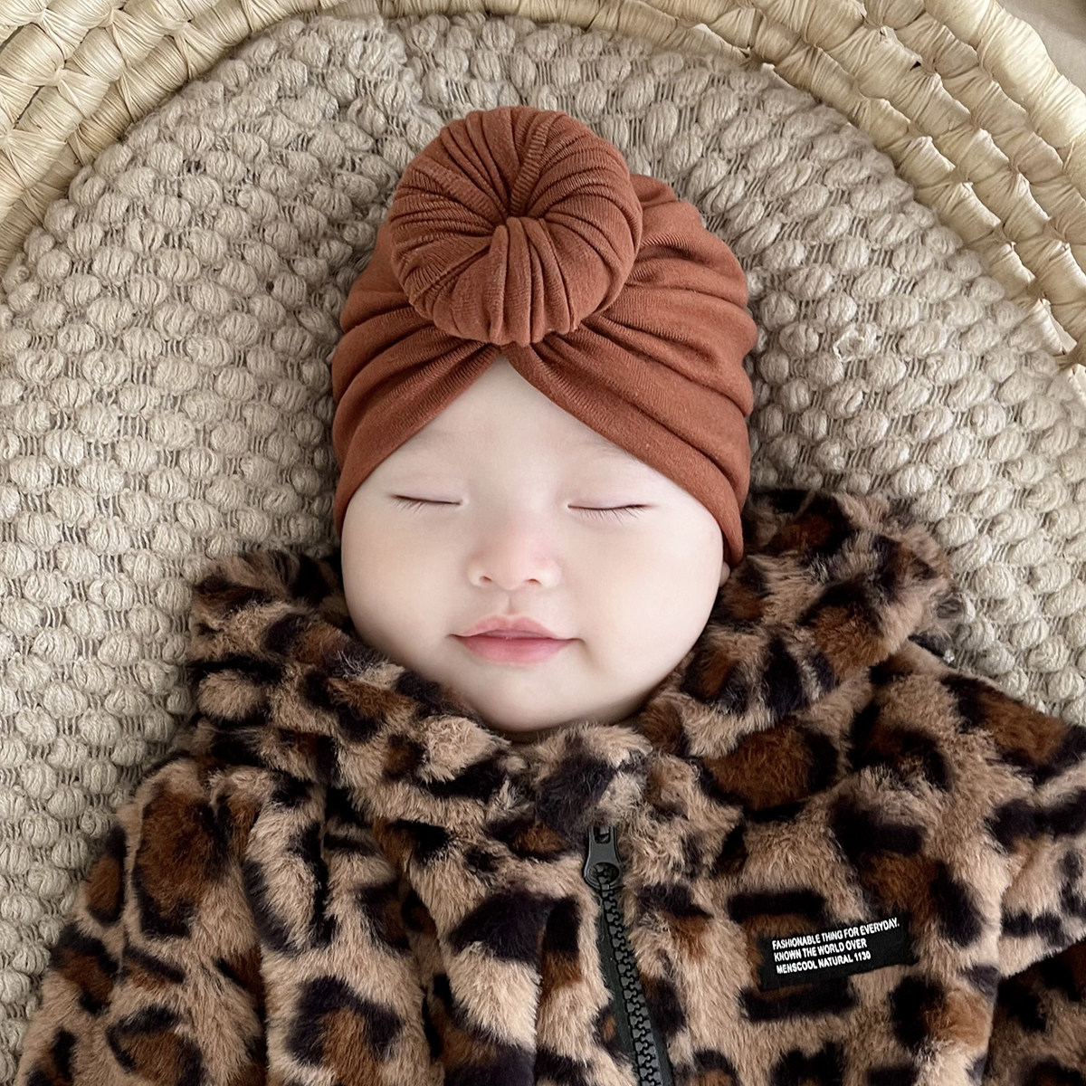 【新品首发】嫚熙婴儿帽子火山小磨毛秋冬季男女童保暖胎帽宝宝