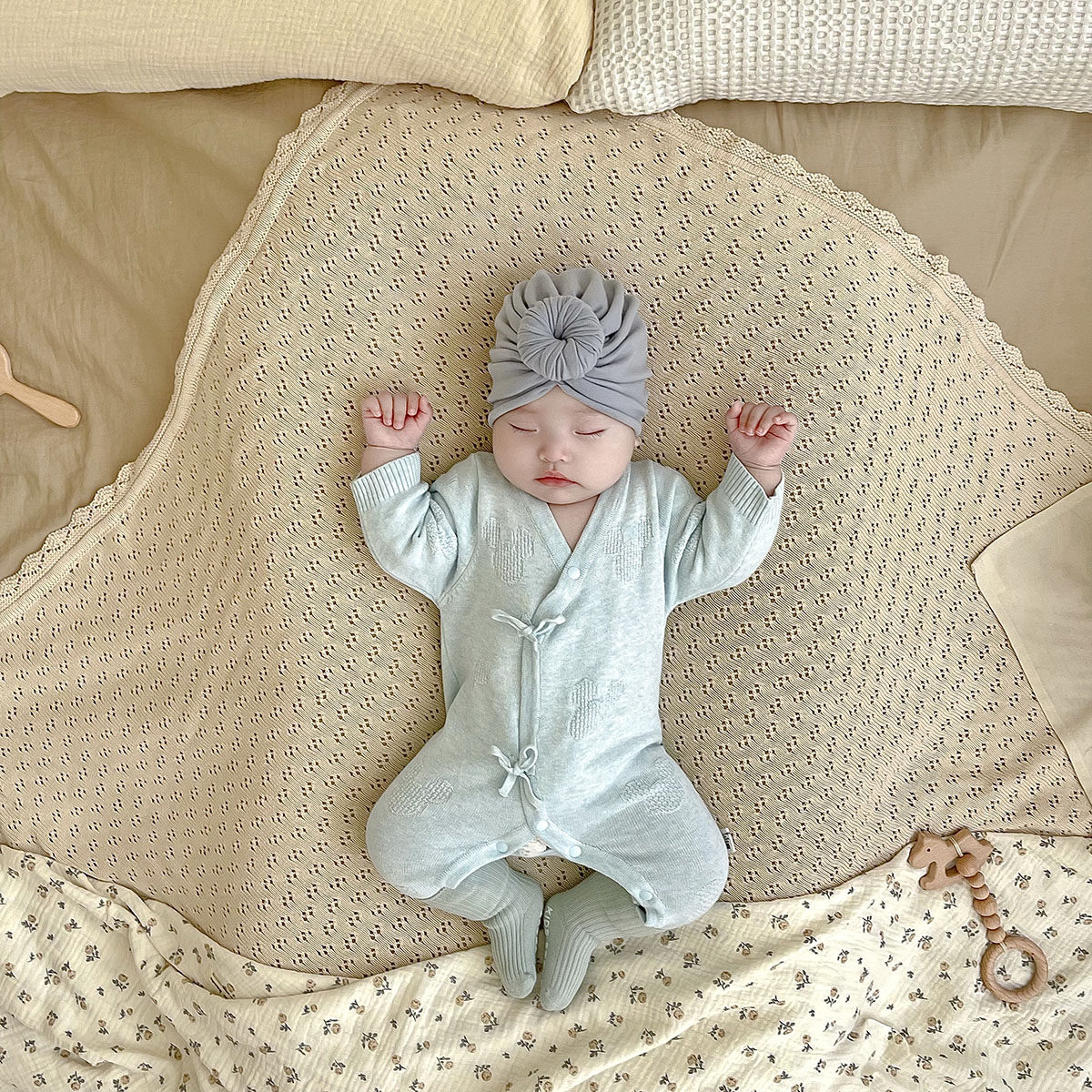 十月结晶粒粒阳光婴儿帽子a类0到3个月新生小月龄宝宝护囟门胎帽