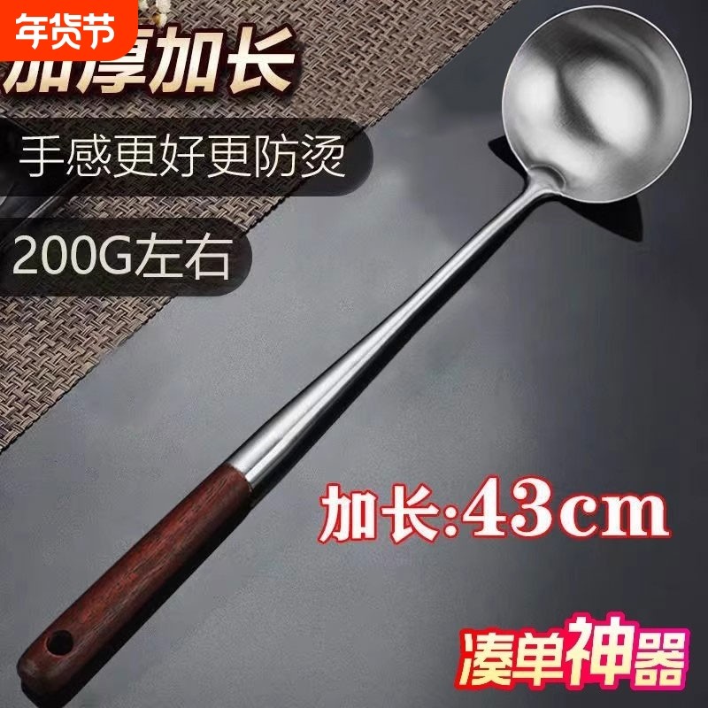 加长优质不锈钢锅铲炒菜铁铲子厨房家用木柄炒铲炒勺汤勺漏勺套装
