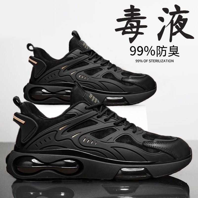 黑色气垫运动鞋男秋季透气防臭2025新款跑步鞋男款增高休闲网面鞋